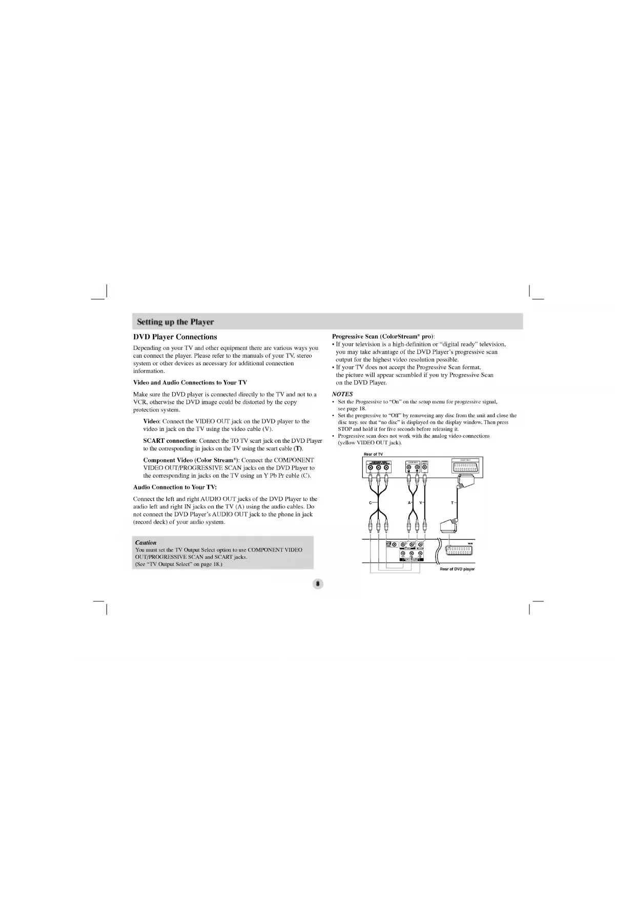 use COMPONENT VIDEO OUT/PROGRESSIVE SCAN and SCART jacks. (See "TV Output Select"