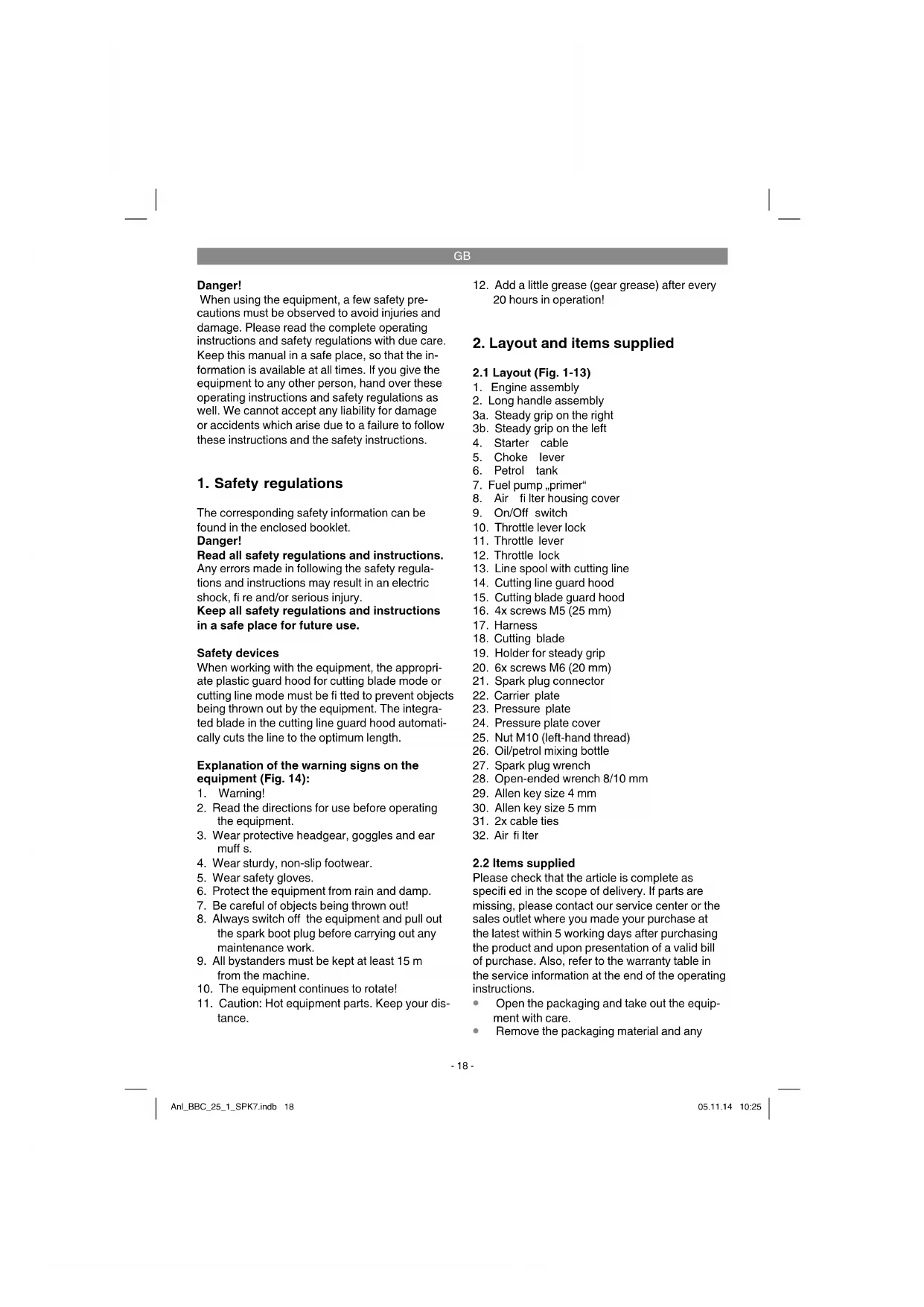 The equipment is supplied in packaging to pre- vent it from being damaged in transit. The raw materials in this packaging can be reused or recycled. The equipment and its accessories are made of various types of material, such as metal and plastic. Defective components must be dispo- sed of as special waste. Ask your dealer or your local council. Anl_BBC_25_1_SPK7.indb 25Anl_BBC_25_1_SPK7.indb 25 05.11.14 10:2505.11.14 10:25GB