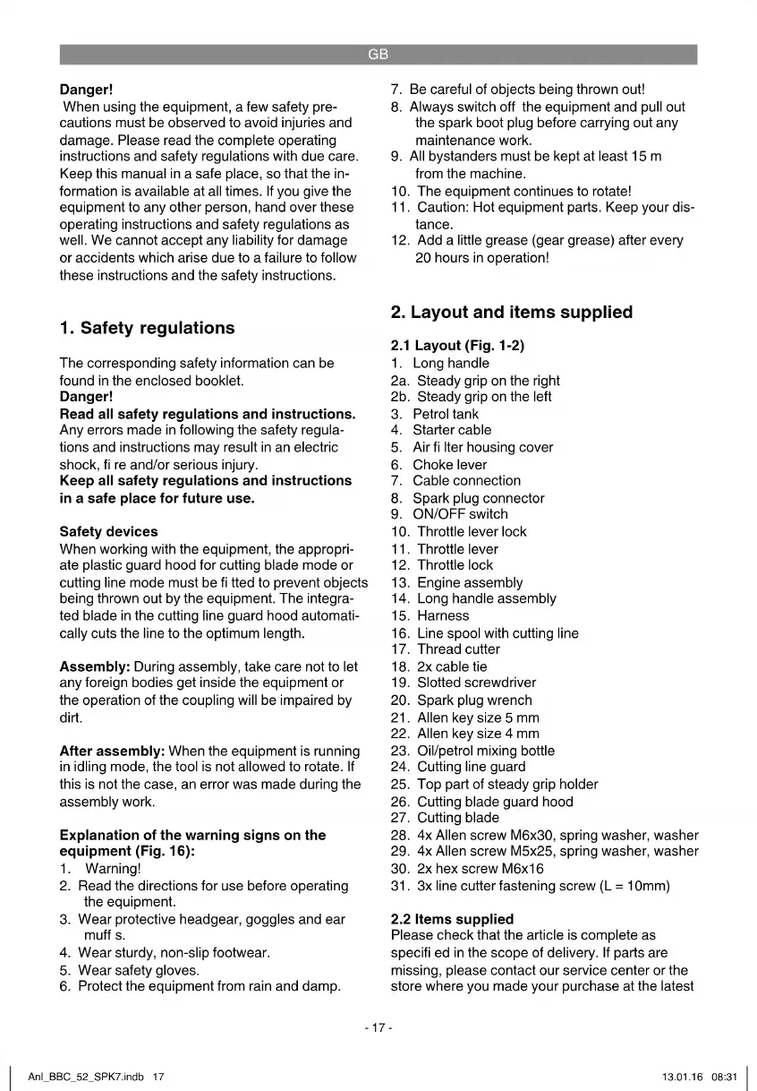 Please check that the article is complete as specifi ed in the scope of delivery. If parts are missing, please contact our service center or the store where you made your purchase at the latest Anl_BBC_52_SPK7.indb 17Anl_BBC_52_SPK7.indb 17 13.01.16 08:3113.01.16 08:31GB