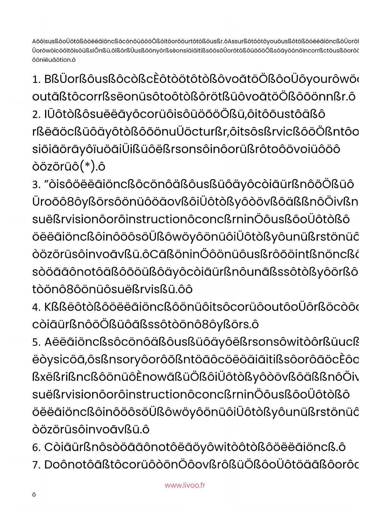 @Livoo ENwww.livoo.fr A misuse of the appliance can damage it or hurt the user. Assure that you use the appliance for the use for which it is designed. We refuse any responsibilities as for the damages by an incorrect use or a bad manipulation.