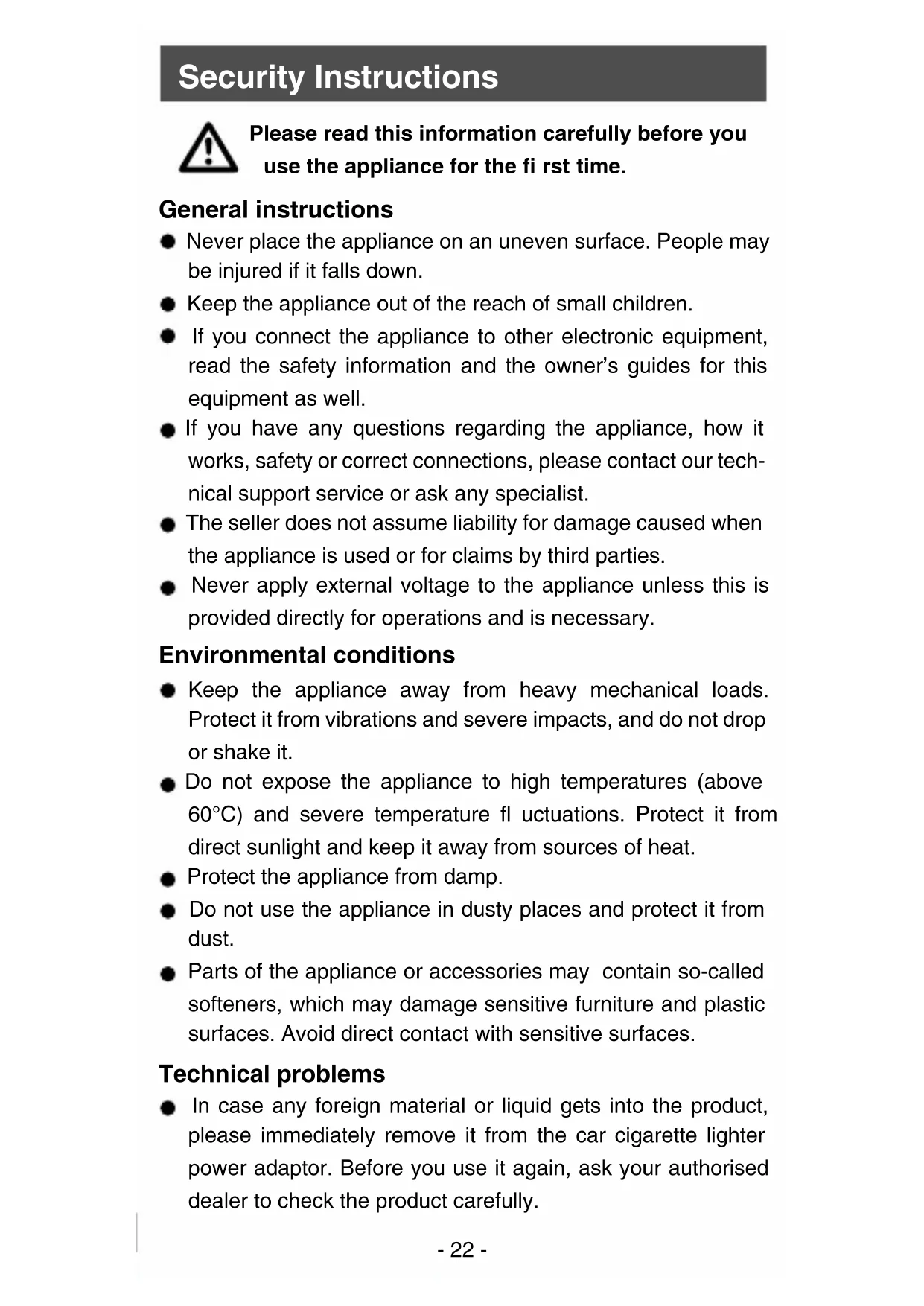 - Security instructions p. 22