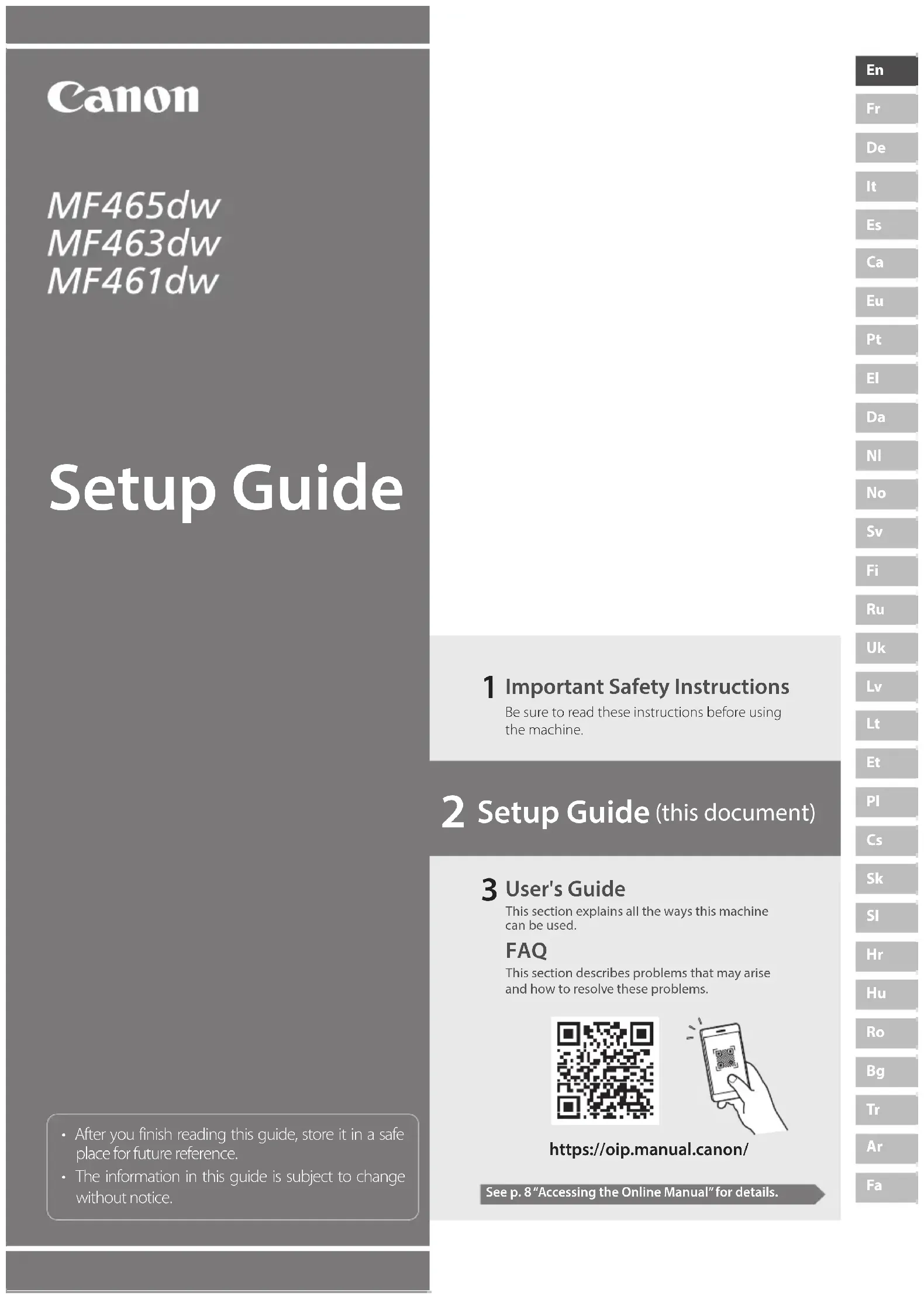 Download the instructions for your Printer in PDF format for free! Find your manual i-SENSYS MF461dw - CANON and take your electronic device back in hand. On this page are published all the documents necessary for the use of your device. i-SENSYS MF461dw by CANON.