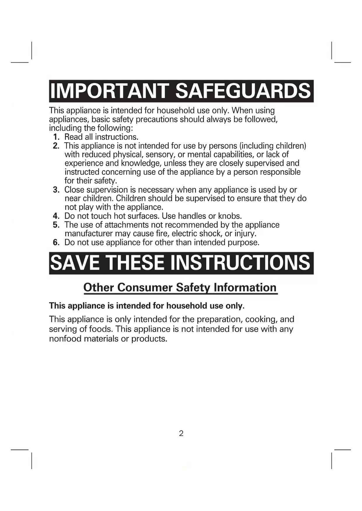 This appliance is intended for household use only. This appliance is only intended for the preparation, cooking, and serving of foods. This appliance is not intended for use with any nonfood materials or products. This appliance is intended for household use only. When using appliances, basic safety precautions should always be followed, including the following: