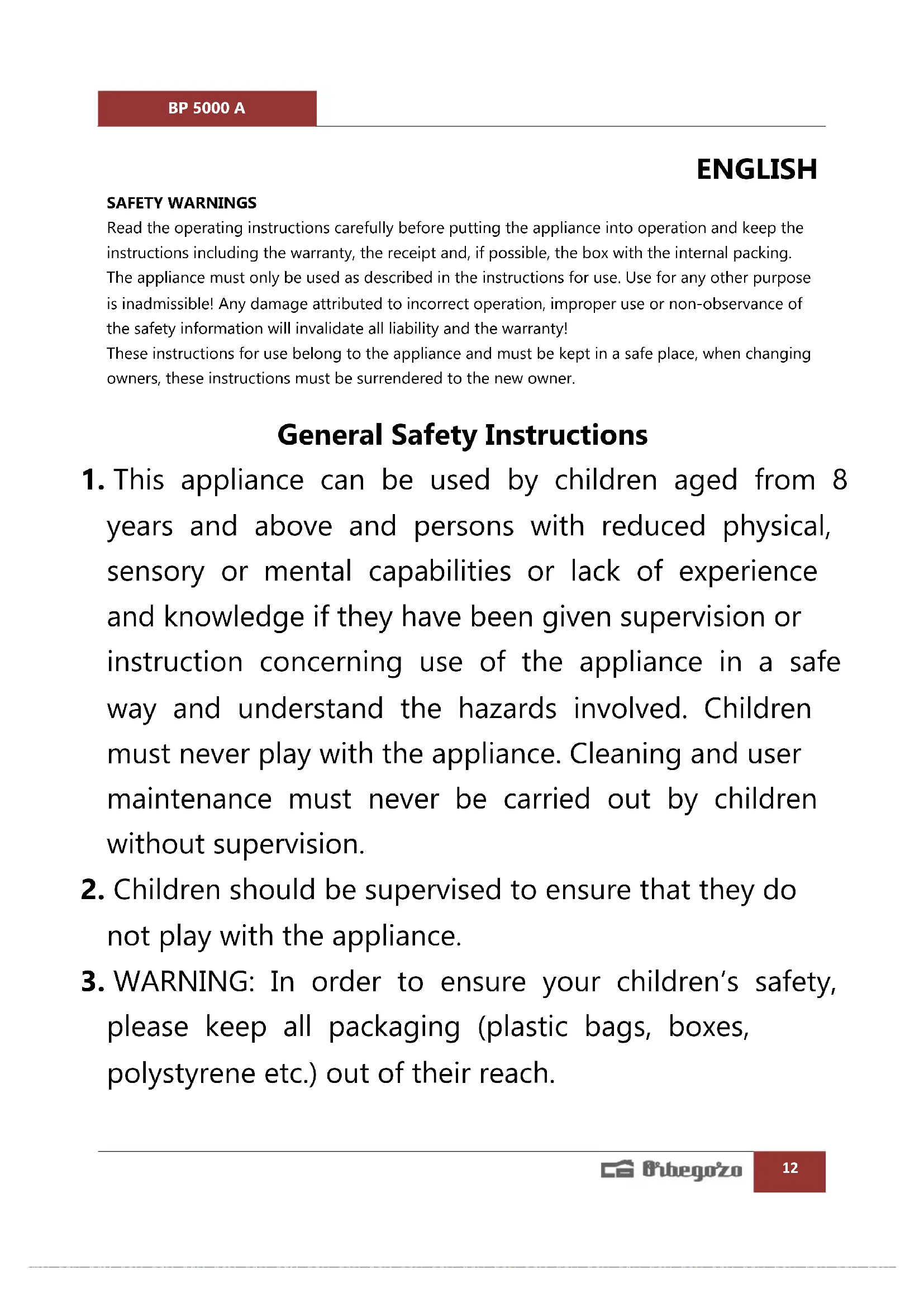 please keep all packaging (plastic bags, boxes, polystyrene etc.) out of their reach.BP 5000 A