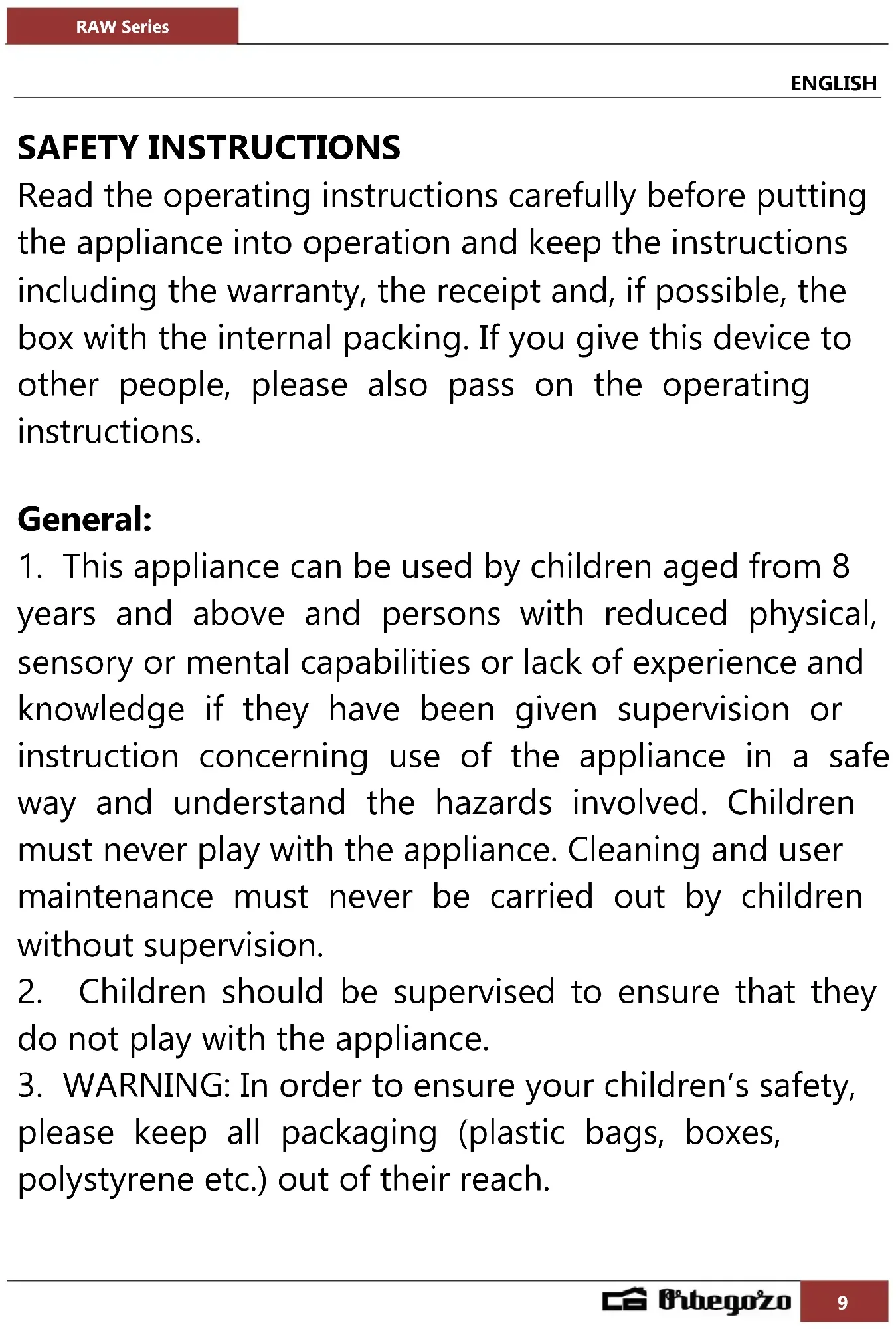 please keep all packaging (plastic bags, boxes, polystyrene etc.) out of their reach.RAW Series