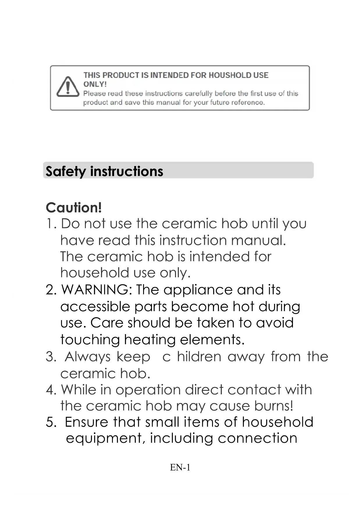 have read this instruction manual. The ceramic hob is intended for household use only.
