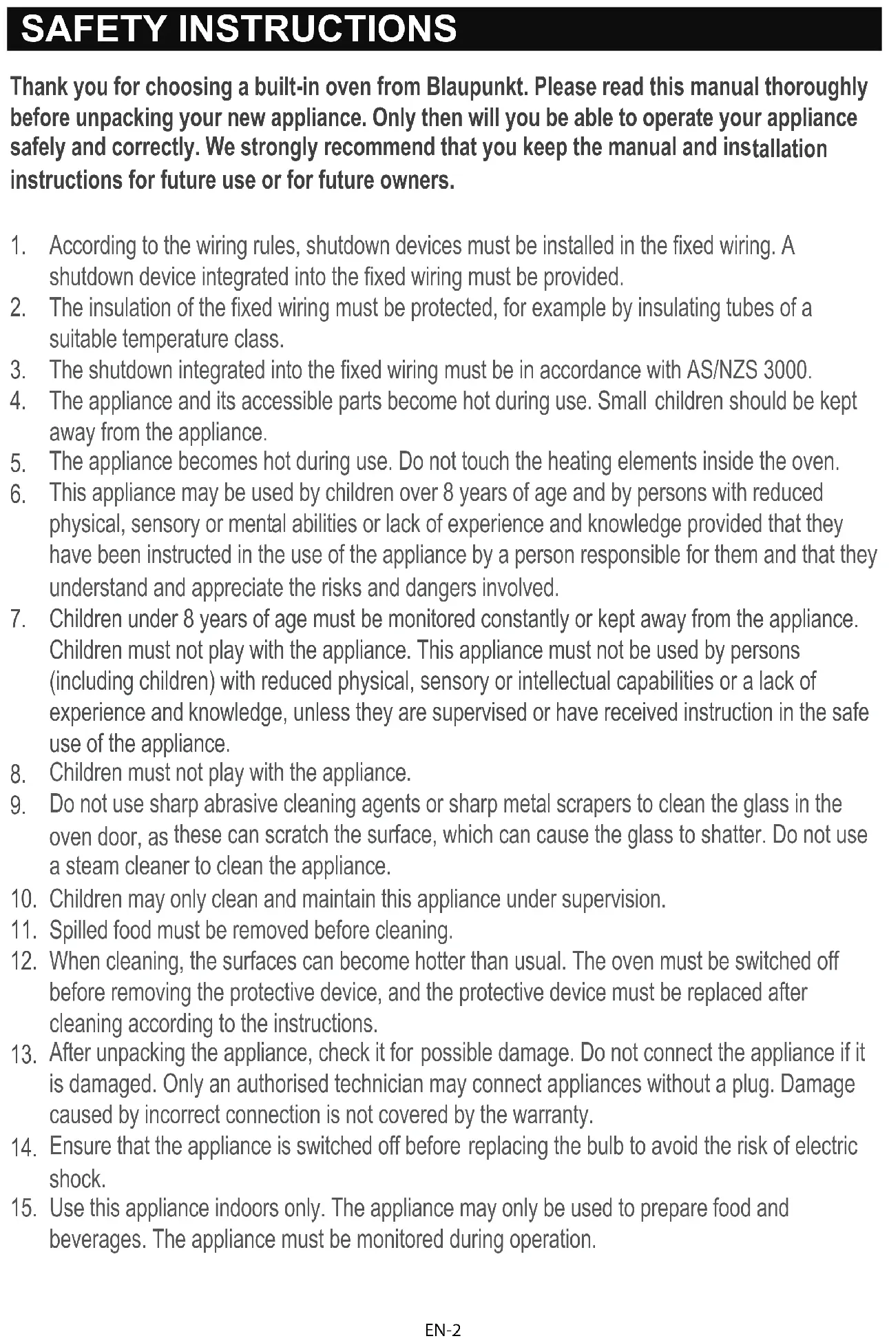 in oven from Blaupunkt. Please read this manual thoroughly before unpacking your new appliance. Only then will you be able to operate your appliance safely and correctly. We strongly recommend that you keep the manual and ins tallation instructions for future use or for future owners.