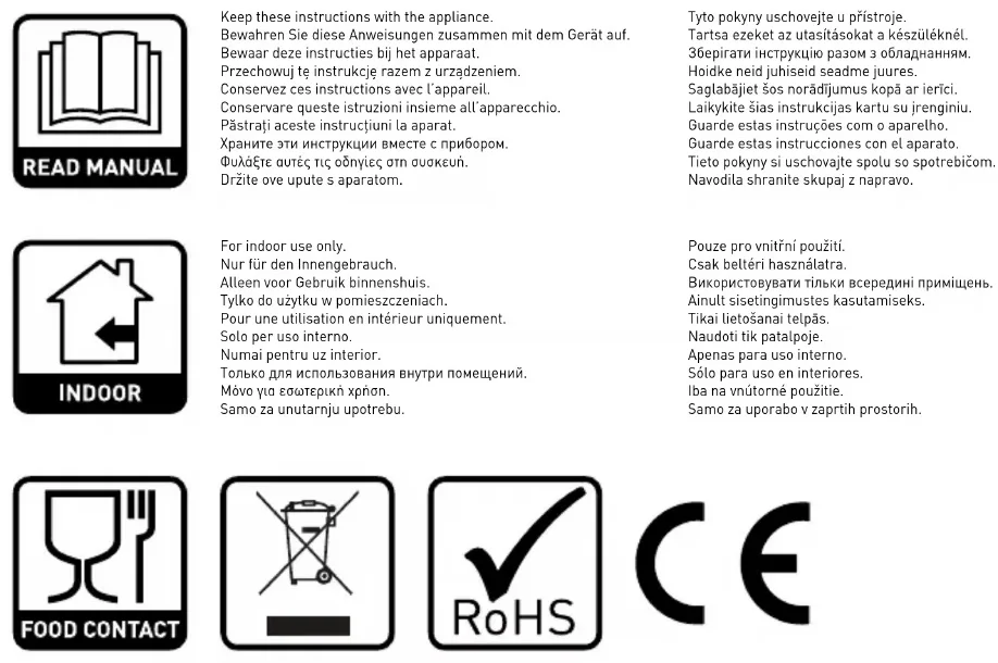 - Keep the appliance and electrical plug away from water and other liquids. In the event the appliance falls into water, immediately remove the power plug from the socket. Do not use the appliance until it has been checked by a certified technician. Failure to follow these instructions will cause life threatening risks.
