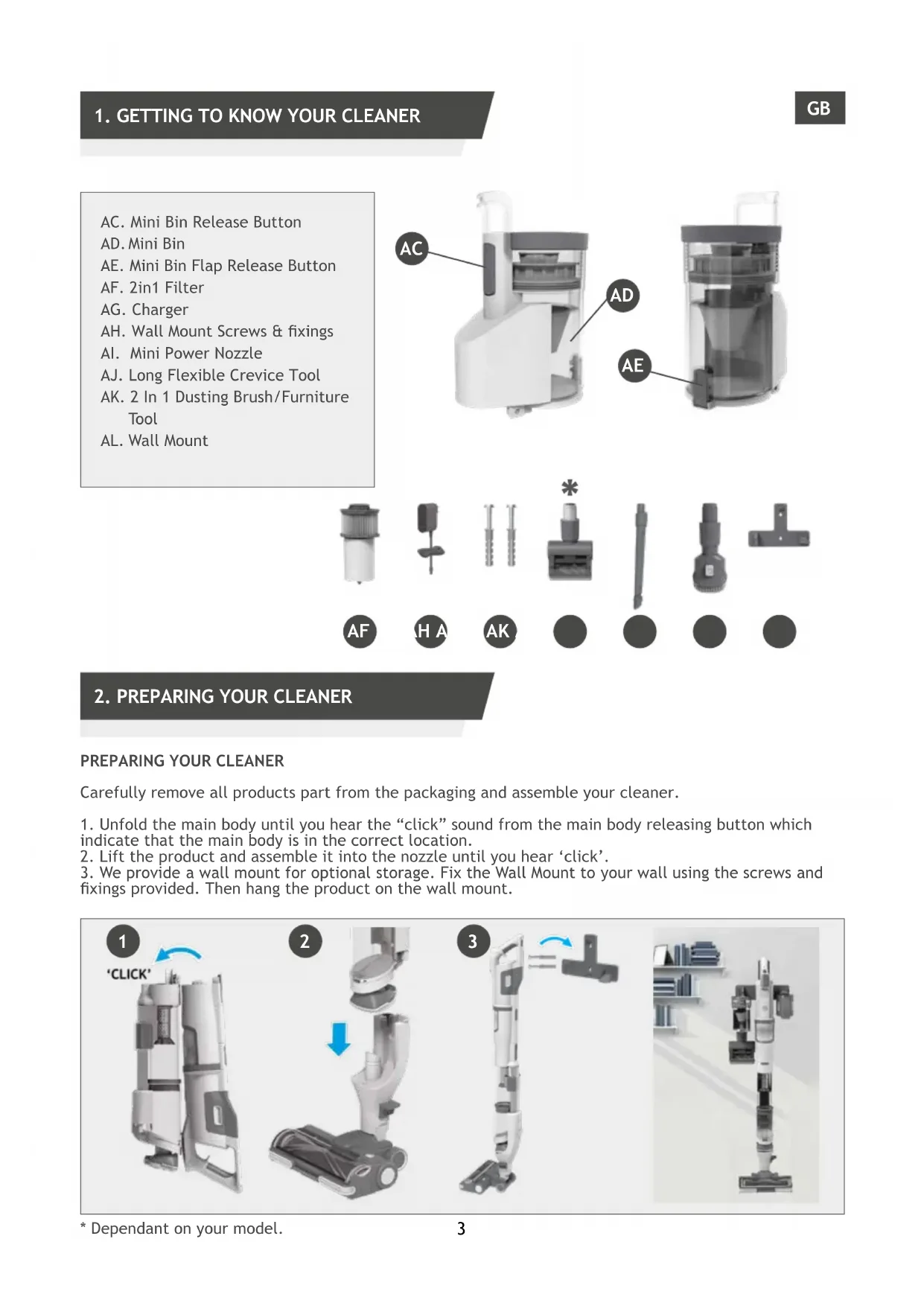Carefully remove all products part from the packaging and assemble your cleaner.