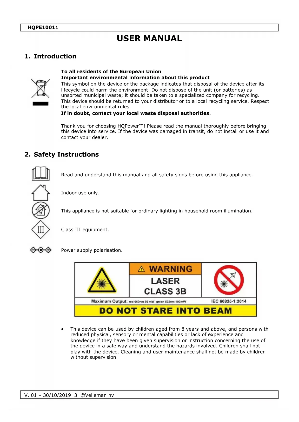 USER MANUAL HQPE10011 VELLEMAN