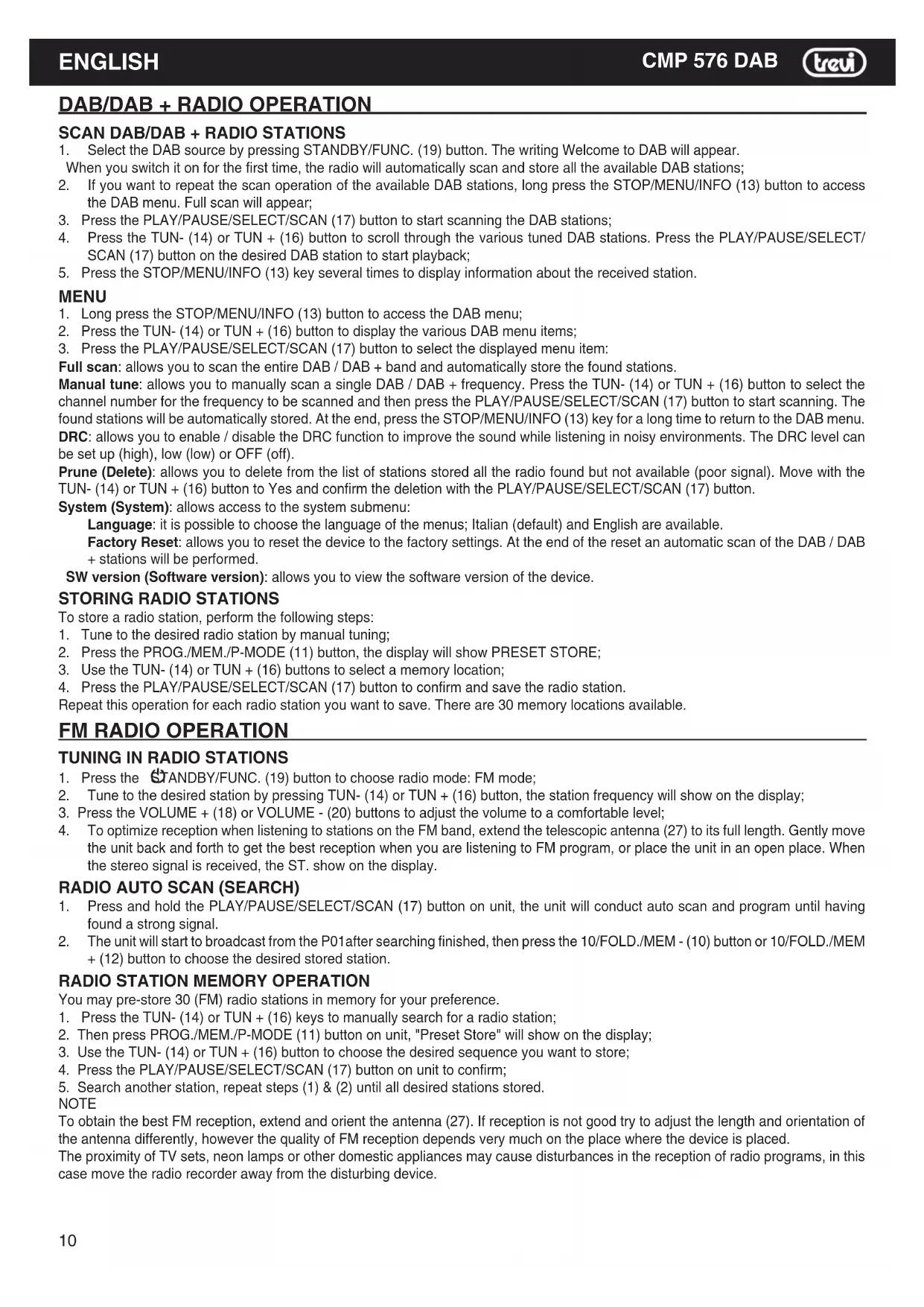CMP 576 DAB - Radio Trevi - Free user manual and instructions