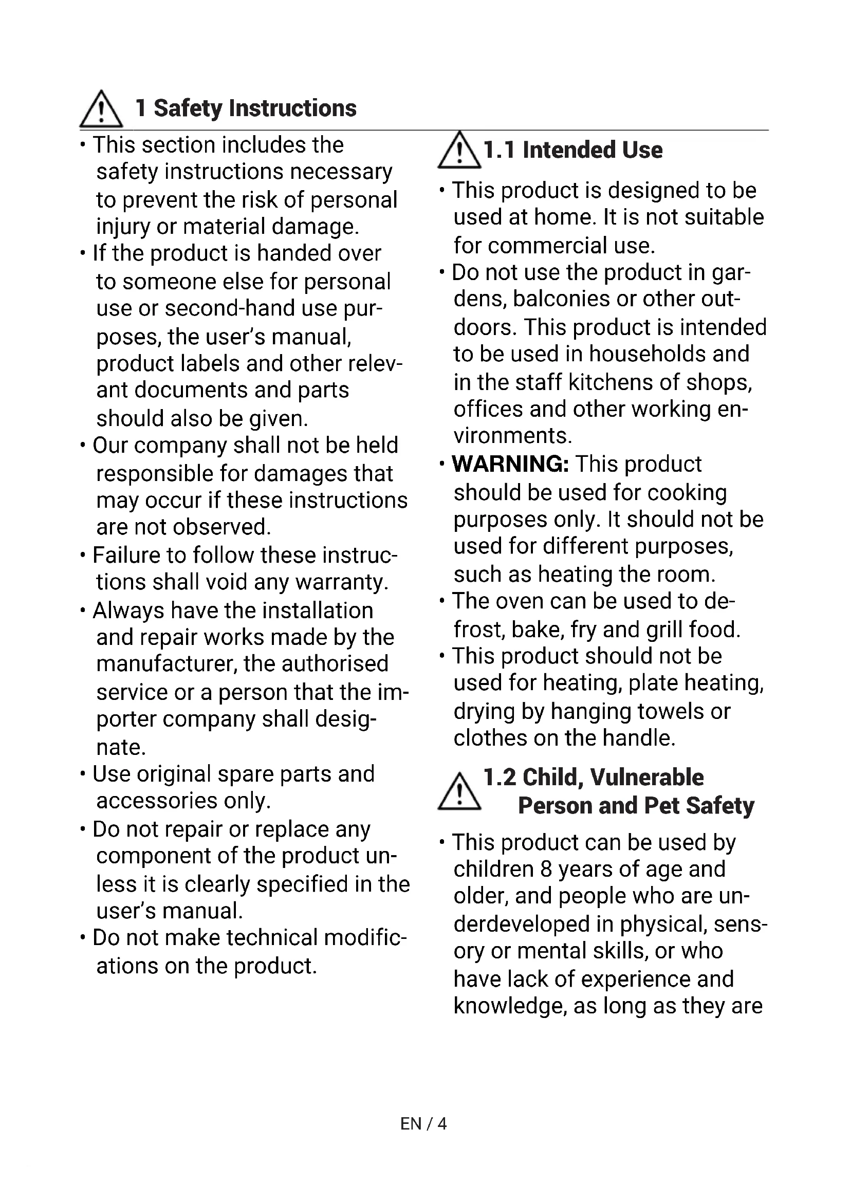 FREN / 2 Welcome! Dear Customer, Thank you for choosing the Beko product. We want your product, manufactured with high quality and technology, to offer you the best efficiency. Therefore, carefully read this manual and any other documentation provided before using the product. Keep in mind all the information and warnings stated in the user’s manual. This way, you will protect yourself and your product against the dangers that may occur. Keep the user’s manual. If you give the product to someone else, give the manual with it. The warranty conditions, usage and troubleshooting methods for your product are provided in this manual. The symbols and their descriptions in the user’s manual: Hazard that may result in death or injury. Important information or useful usage tips. Read the user’s manual. Hot surface warning. NOTICE Hazard that may result in material damage to the product or its environment.EN / 3 Table of Contents 1 Safety Instructions........................ 4