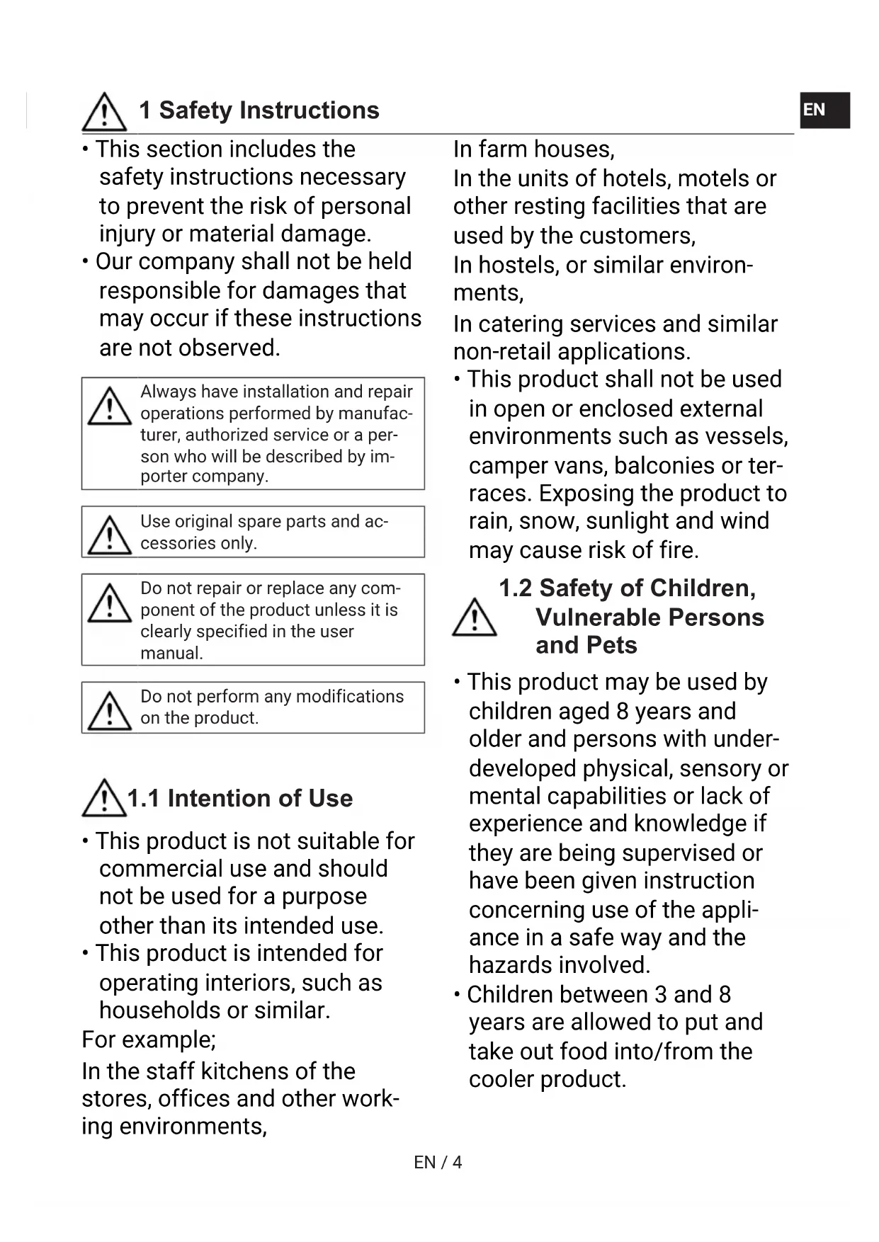 - Children between 3 and 8 years are allowed to put and take out food into/from the cooler product.