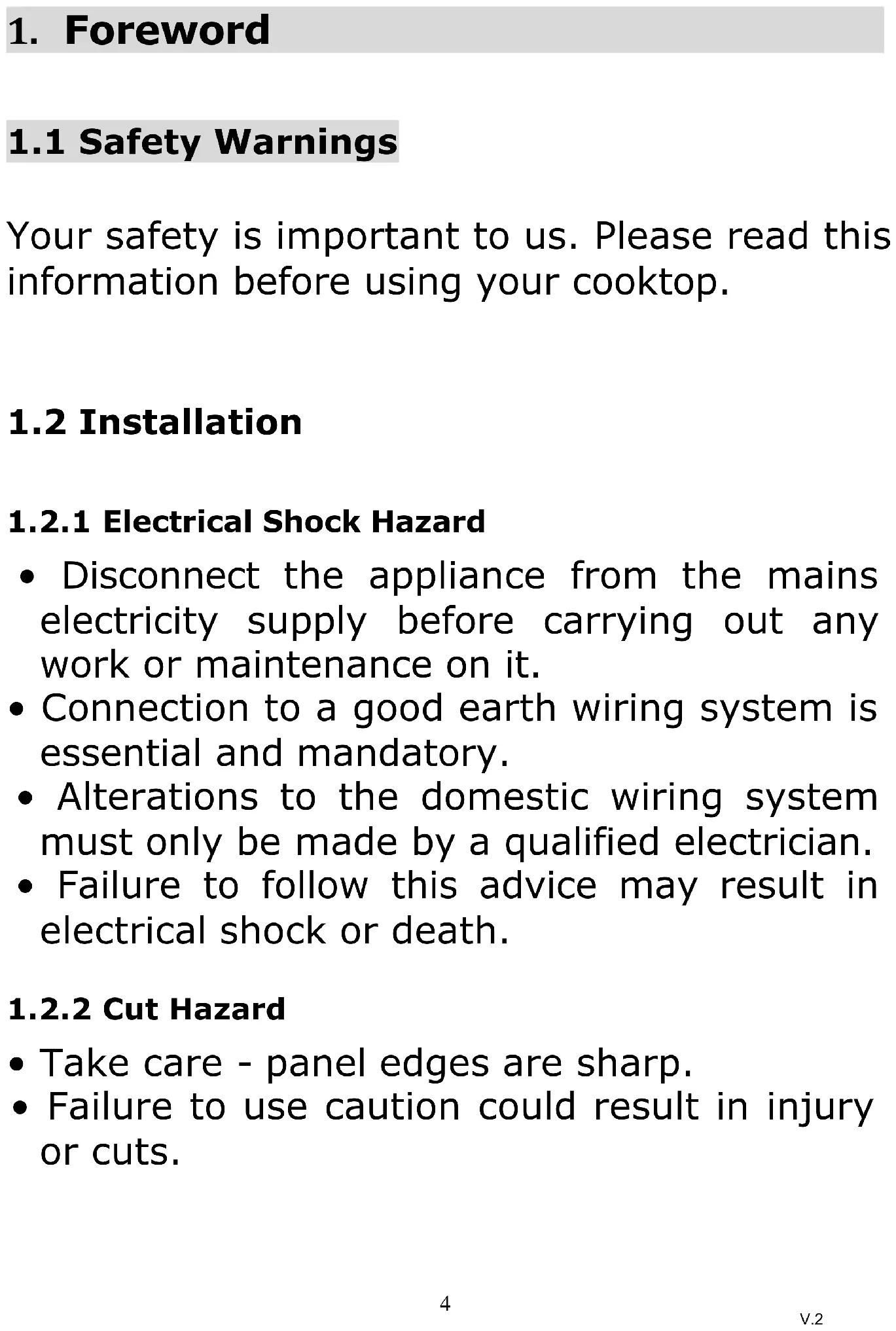 - Failure to use caution could result in injury or cuts. Congratulations on the purchase of your new Induction Hob. We recommend that you spend some time to read this Instruction / Installation Manual in order to fully understand how to install correctly and operate it. For installation, please read the installation section. Read all the safety instructions carefully before use and keep this Instruction / Installation Manual for future reference. V.211