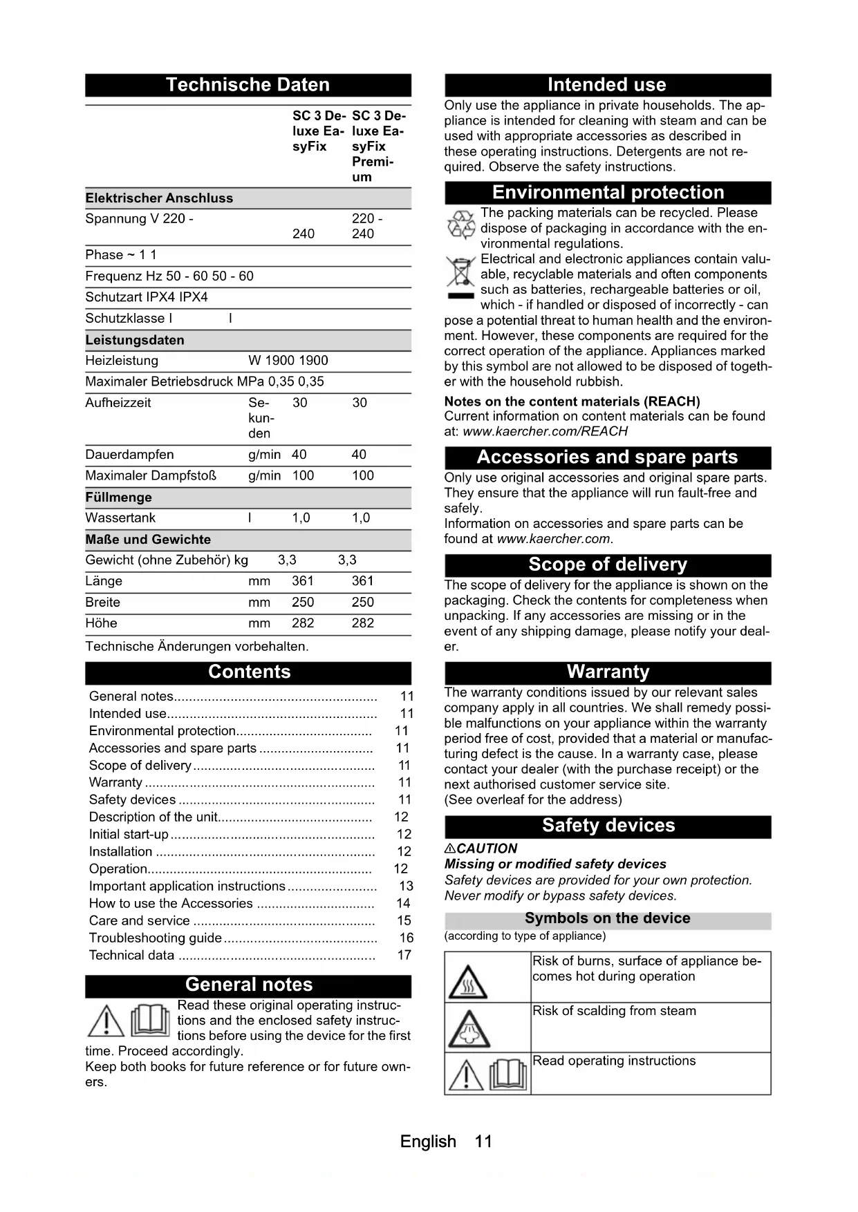 Download the instructions for your Steam cleaner in PDF format for free! Find your manual SC 3 Deluxe EasyFix Premium - Kärcher and take your electronic device back in hand. On this page are published all the documents necessary for the use of your device. SC 3 Deluxe EasyFix Premium by Kärcher.