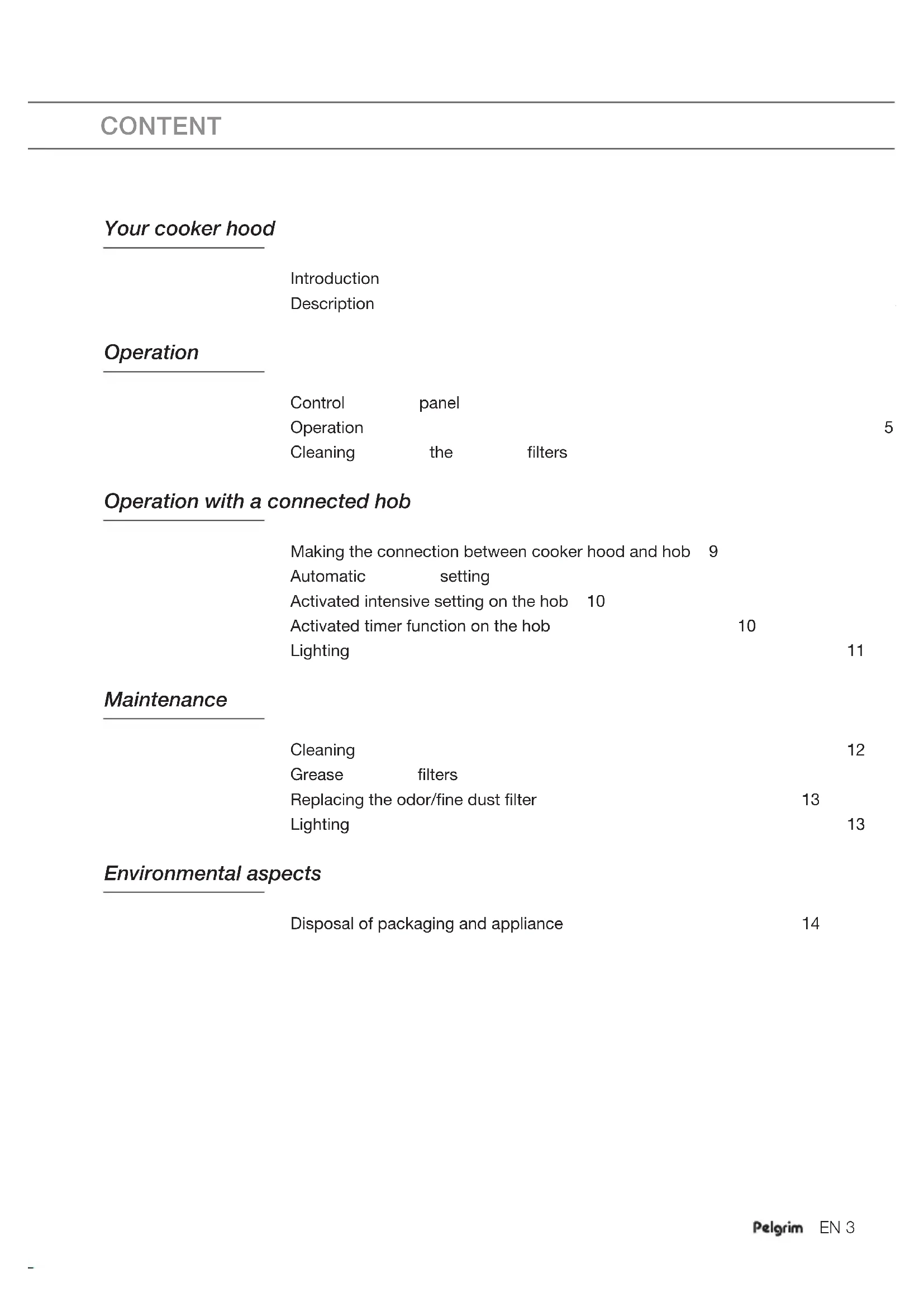 - DO NOT wash or reuse the odor/fine dust filter. Saturated carbon is not environmentally friendly, change the filter regularly. Lighting This hood is fitted with a light system. This light system has to be replaced by an authorized technician. Do not attempt to replace it by yourself. The lamp in this household appliance is only suitable for illumination of this appliance. The lamp is not suitable for household room illumination. MAINTENANCEEN 14 ENVIRONMENTAL ASPECTS Disposal of packaging and appliance This appliance is made from sustainable materials. This appliance must be disposed of in a responsible manner at the end of its service life. Contact the local authorities for information about the method. The packaging of the appliance is recyclable. The following materials may have been used: