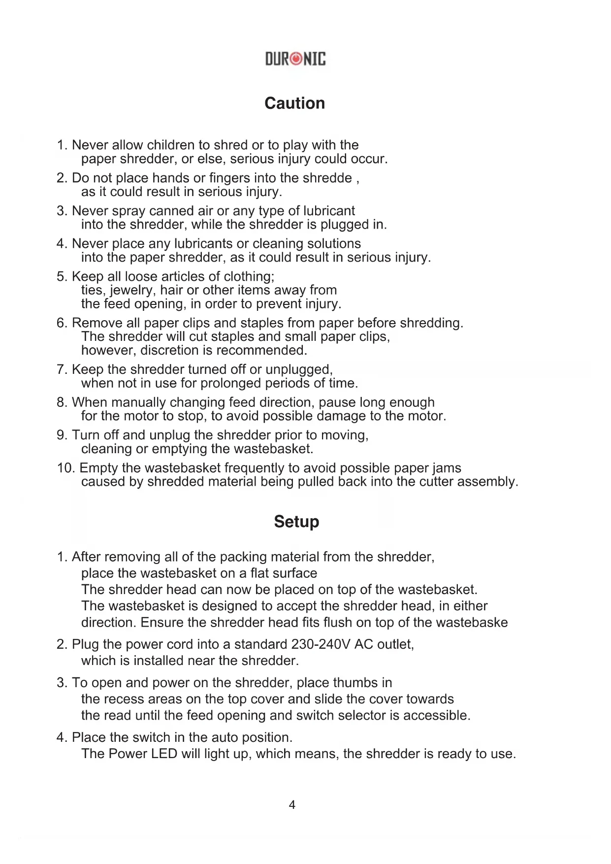 PS391 - Shredder Duronic - Free user manual and instructions