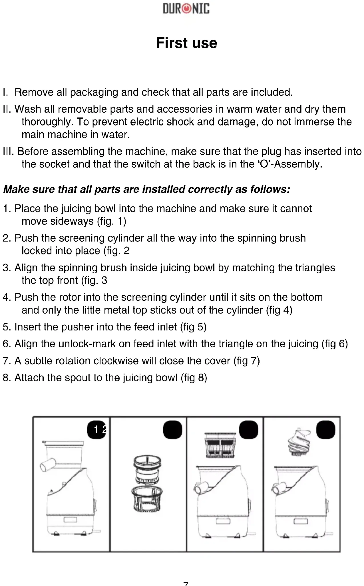 8. Attach the spout to the juicing bowl (fig 8)