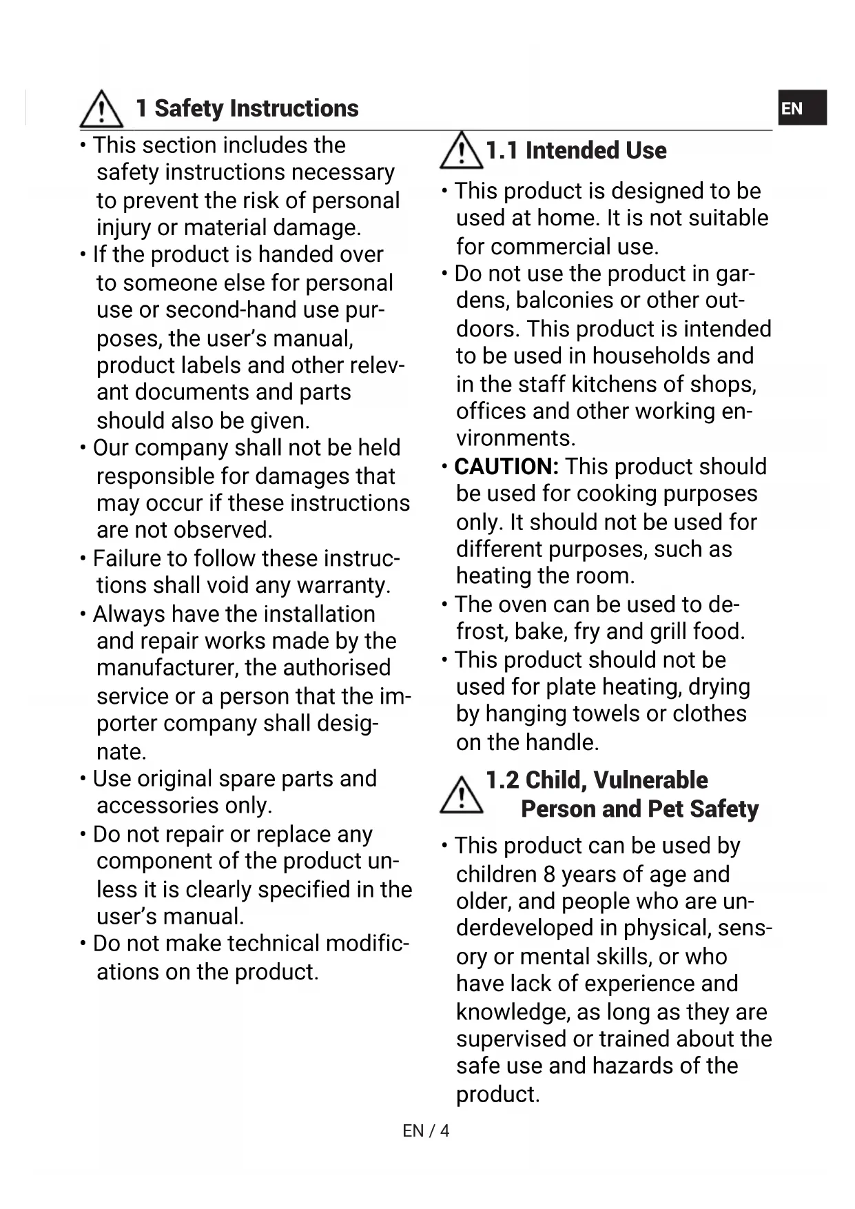 - CAUTION: This product should be used for cooking purposes only. It should not be used for different purposes, such as heating the room.
