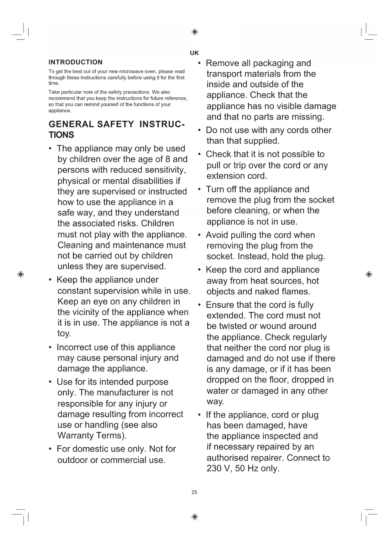 INTRODUCTION To get the best out of your new microwave oven, please read through these instructions carefully before using it for the rst time. Take particular note of the safety precautions. We also recommend that you keep the instructions for future reference, so that you can remind yourself of the functions of your appliance.