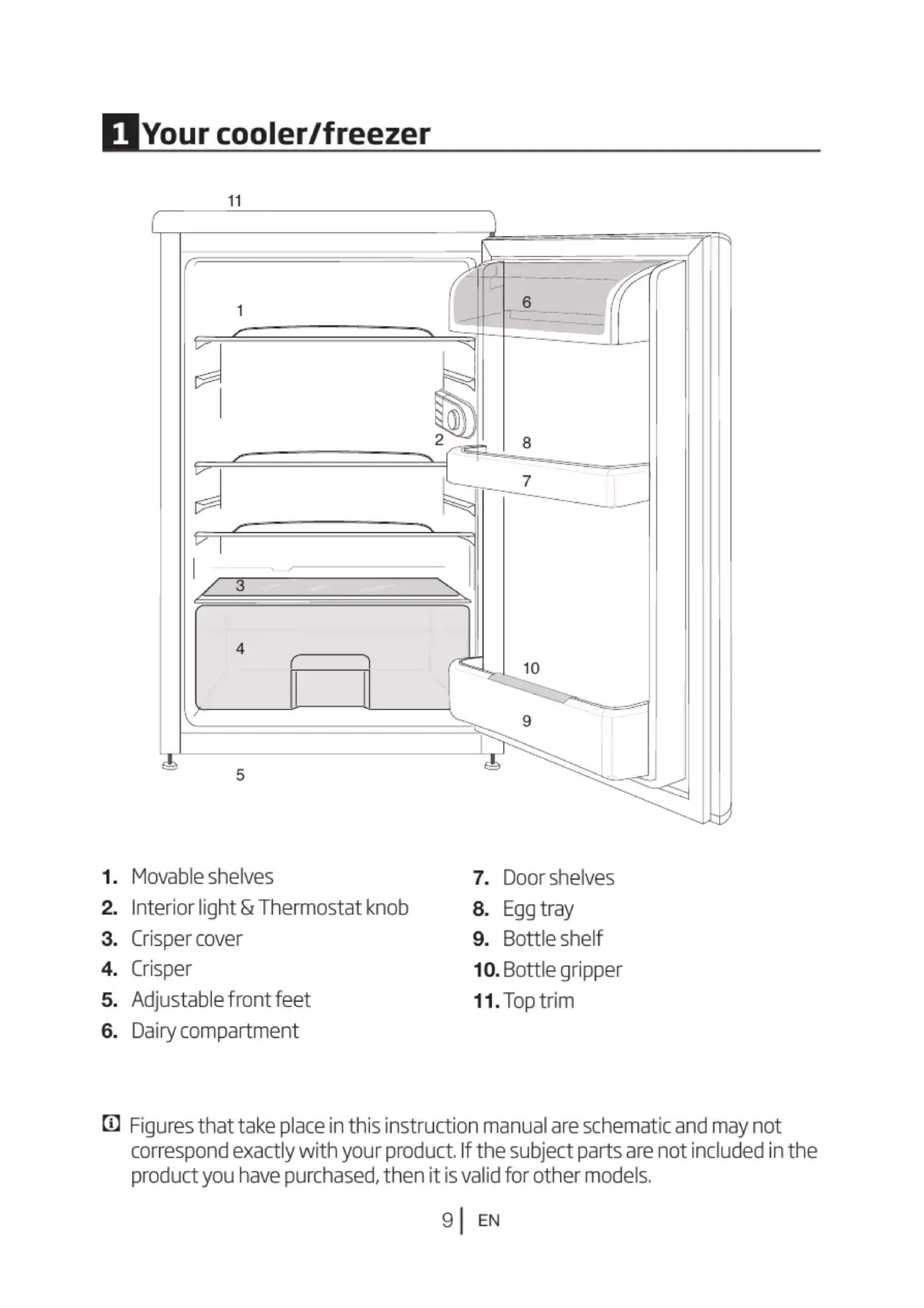 - This cooler/freezer is intended for only storing food items. It must not be used for any other purpose.