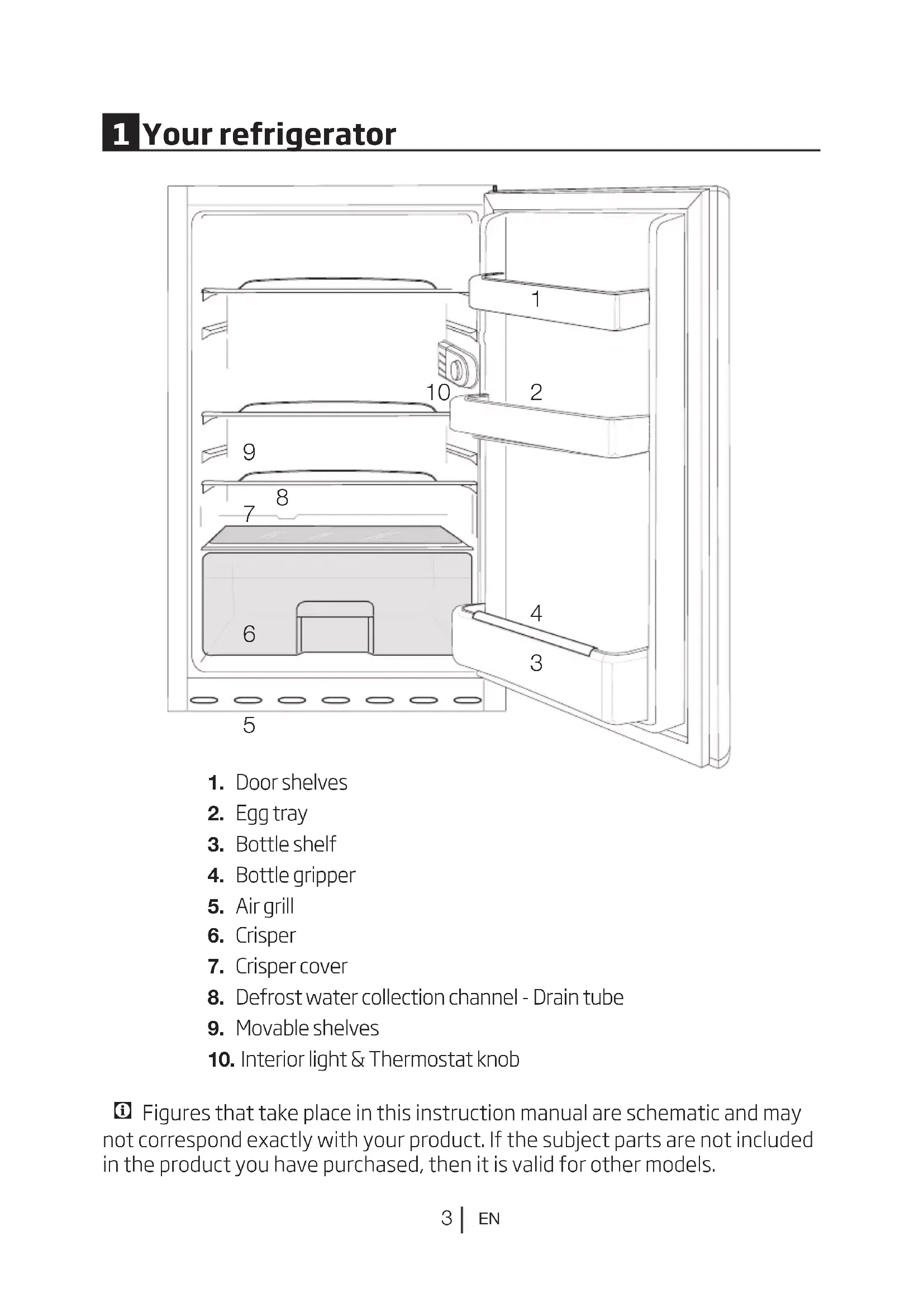 1 Your refrigerator C Figures that take place in this instruction manual are schematic and may not correspond exactly with your product. If the subject parts are not included in the product you have purchased, then it is valid for other models.
