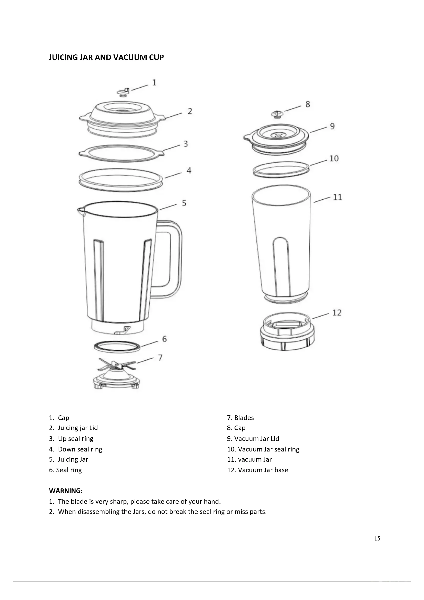 1. Correct assemble the jars before juicing or vacuuming.