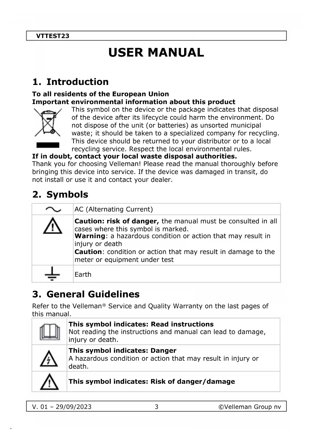 V. 01 – 29/09/2023 5 ©Velleman Group nv