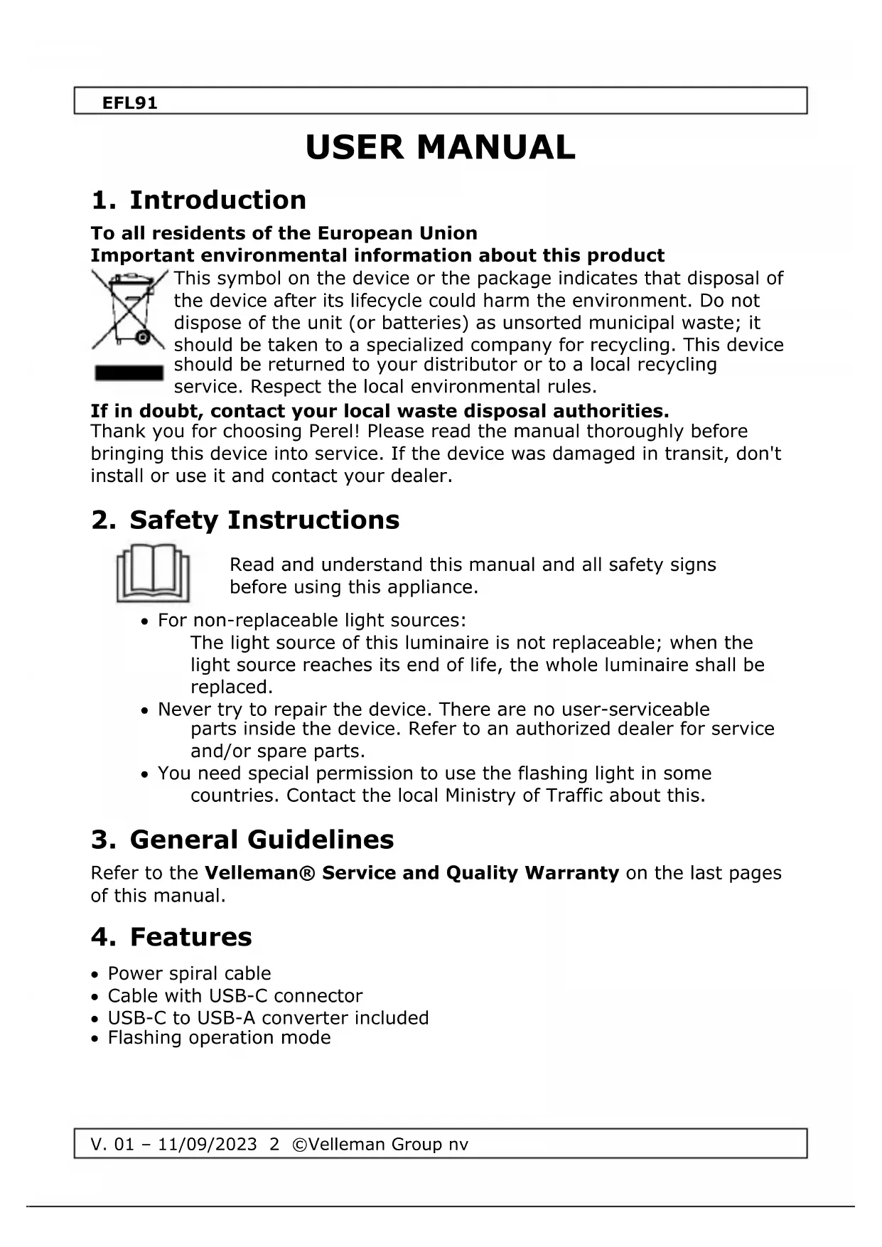 V. 01 – 11/09/2023 4 ©Velleman Group nv