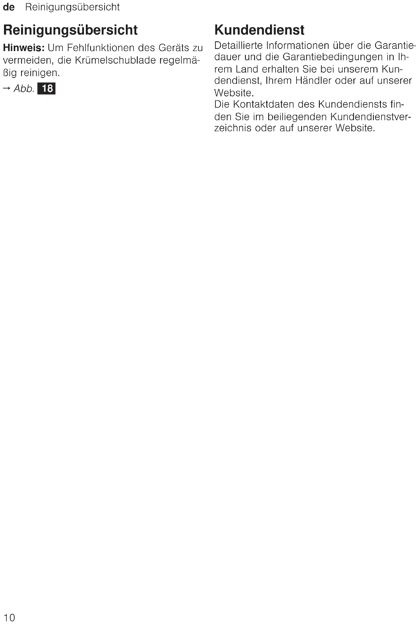 - Fig. 11 - 17 Overview of cleaning Note:In order to avoid malfunction of the appliance, clean the crumb tray regularly.