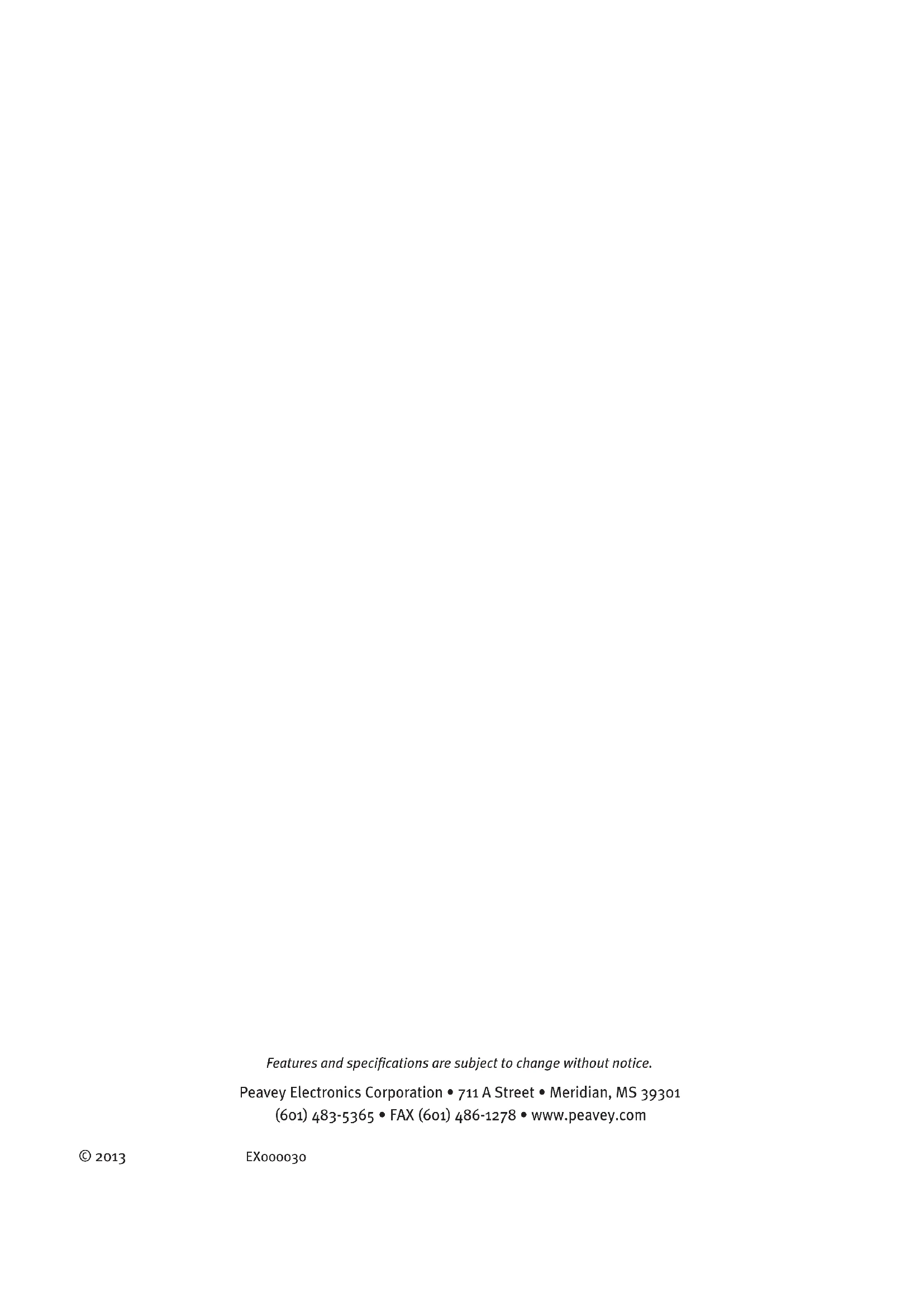 (2) Ship the defective item, prepaid, to Peavey Electronics Corporation, International Service Center, 412 Highway 11 & 80 East, Meridian, MS 39301. Include a detailed description of the problem, together with a copy of your sales receipt or other proof of date of purchase as evidence of Warranty coverage. Also provide a complete return address. Limitation of Implied Warranties ANY IMPLIED WARRANTIES, INCLUDING WARRANTIES OF MERCHANTABILITY AND FITNESS FOR A PARTICULAR PURPOSE, ARE LIMITED IN DURATION TO THE LENGTH OF THIS WARRANTY. Some states do not allow limitations on how long an implied Warranty lasts, so the above limitation may not apply to you. Exclusions of Damages PEAVEY’S LIABILITY FOR ANY DEFECTIVE PRODUCT IS LIMITED TO THE REPAIR OR REPLACEMENT OF THE PRODUCT, AT PEAVEY’S OPTION. IF WE ELECT TO REPLACE THE PRODUCT, THE REPLACEMENT MAY BE A RECONDITIONED UNIT. PEAVEY SHALL NOT BE LIABLE FOR DAMAGES BASED ON INCONVENIENCE, LOSS OF USE, LOST PROFITS, LOST SAVINGS, DAMAGE TO ANY OTHER EQUIPMENT OR OTHER ITEMS AT THE SITE OF USE, OR ANY OTHER DAMAGES WHETHER INCIDENTAL, CONSEQUENTIAL OR OTHERWISE, EVEN IF PEAVEY HAS BEEN ADVISED OF THE POSSIBILITY OF SUCH DAMAGES. Some states do not allow the exclusion or limitation of incidental or consequential damages, so the above limitation may not apply to you. This Warranty gives you specific legal rights, and you may also have other rights which vary from state to state. If you have any questions about this Warranty or services received or if you need assistance in locating an Authorized Service Center, please contact the Peavey International Service Center at (601) 483-5365. Features and specifications are subject to change without notice. Logo referenced in Directive 2002/96/EC Annex IV (OJ(L)37/38,13.02.03 and defined in EN 50419: 2005 The bar is the symbol for marking of new waste and is applied only to equipment manufactured after 13 August 2005U.S. CUSTOMER WARRANTY REGISTRATION Optional Product Extended Warranty Registration Give us some information and put your extended warranty into effect!