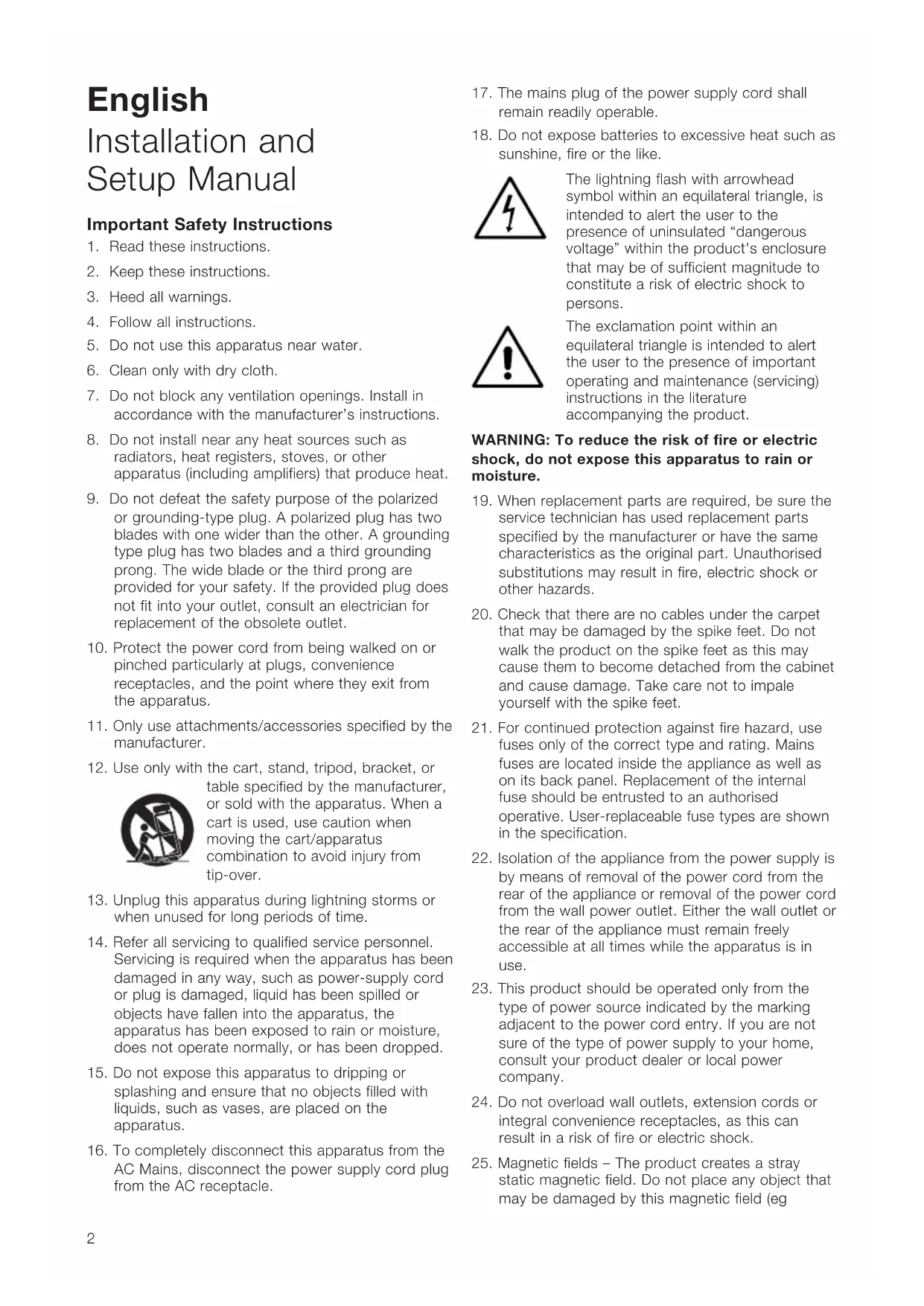 15. Do not expose this apparatus to dripping or