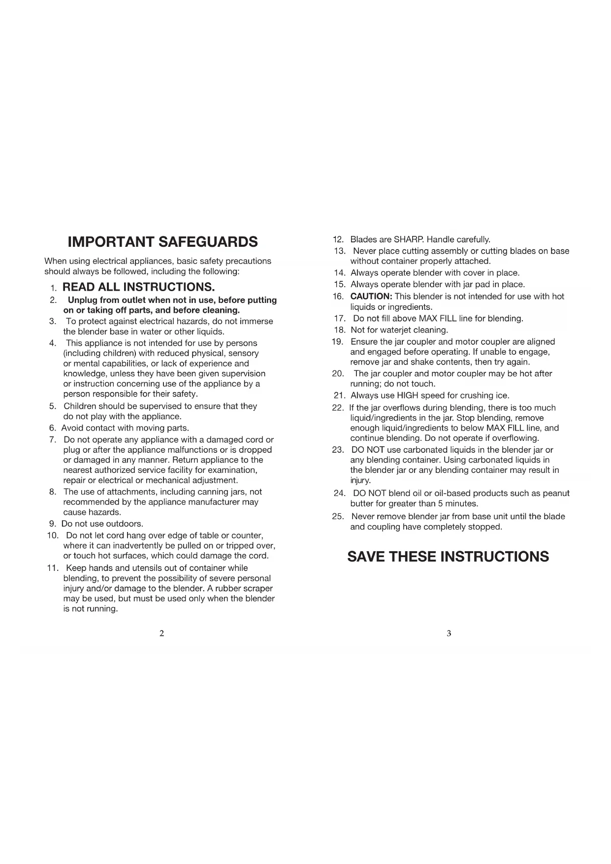 23. DO NOT use carbonated liquids in the blender jar or