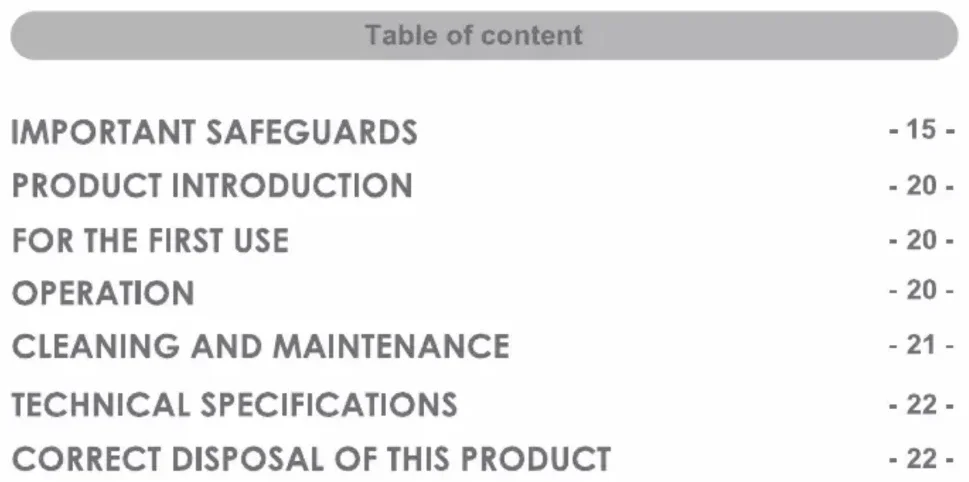 slices less than 85mm length, you must pay attention to the potential risk of burning when taking out the slices.21. Don’t use the appliance outdoors.