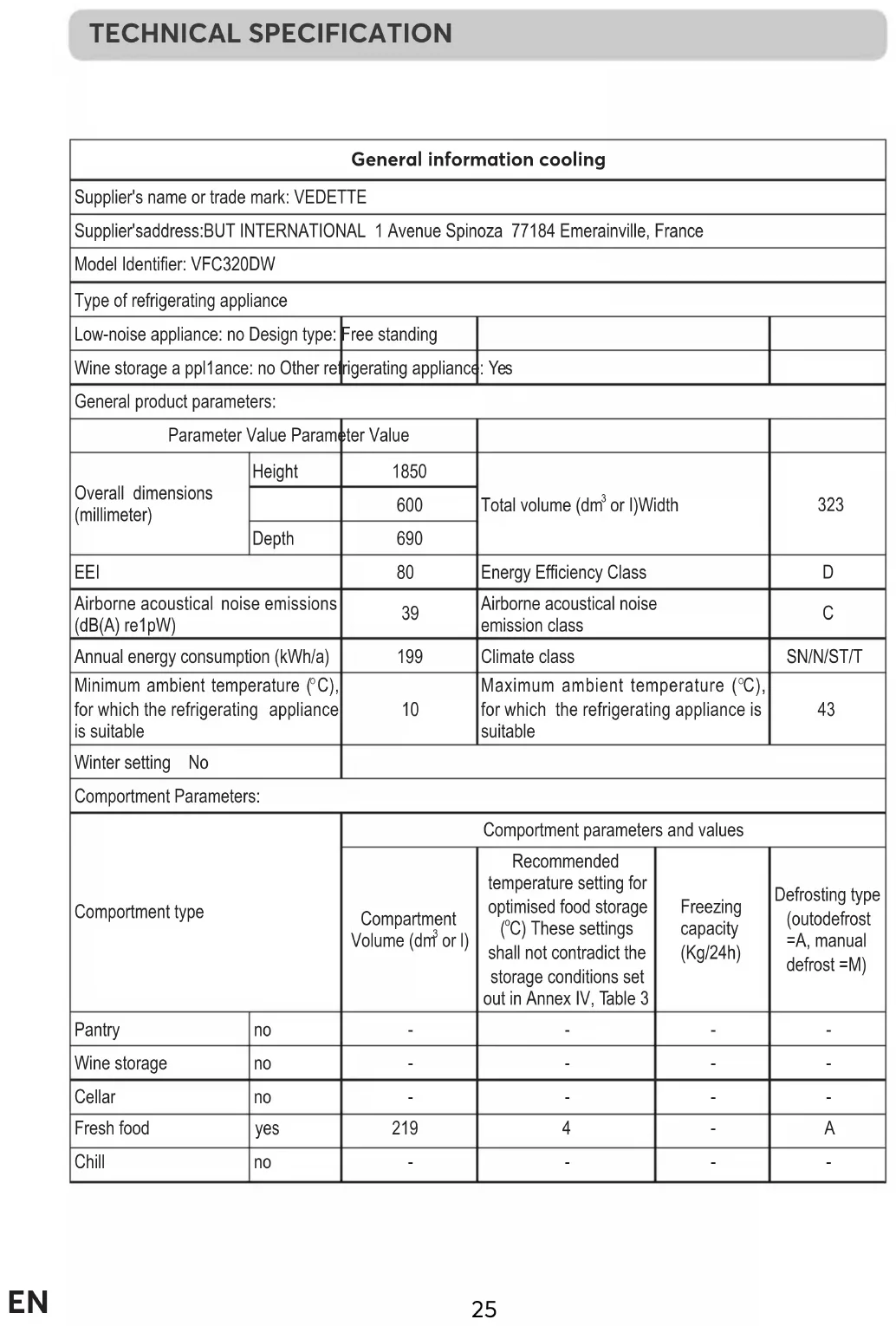 VFC320DW - Fridge VEDETTE - Free user manual and instructions