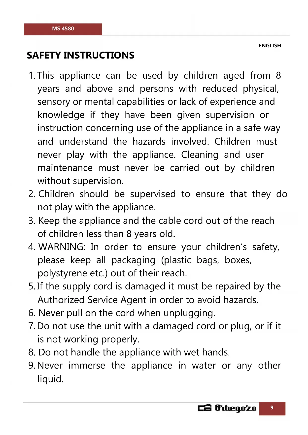 Find the device manual for free MS 4580 Orbegozo in PDF.