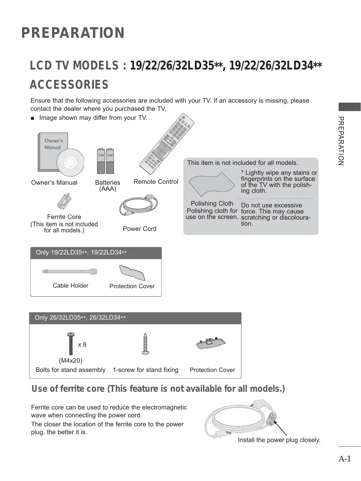 PREPARATION Only 26LD35*xt, 26LD 34x+ = Image shown may differ from your TV. NOI1VHVdIHd | A-4