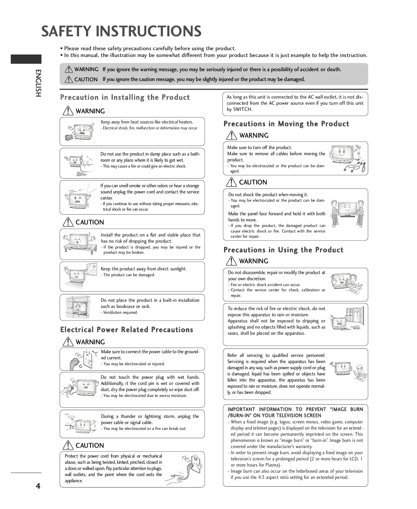 ENGLISH WARNING If you ignore the warning message, you may be seriously injured or there is a possibility of accident or death. CAUTION If you ignore the caution message, you may be slightly injured or the product may be damaged.