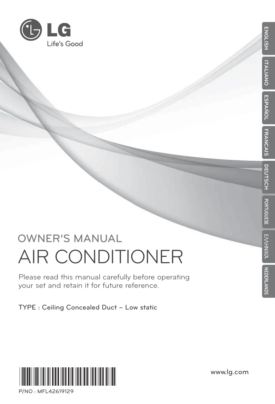OWNER’S MANUAL NEDERLANDS AIR CONDITIONER Please read this manual carefully before operating your set and retain it for future reference. TYPE : Ceiling Concealed Duct – Low static