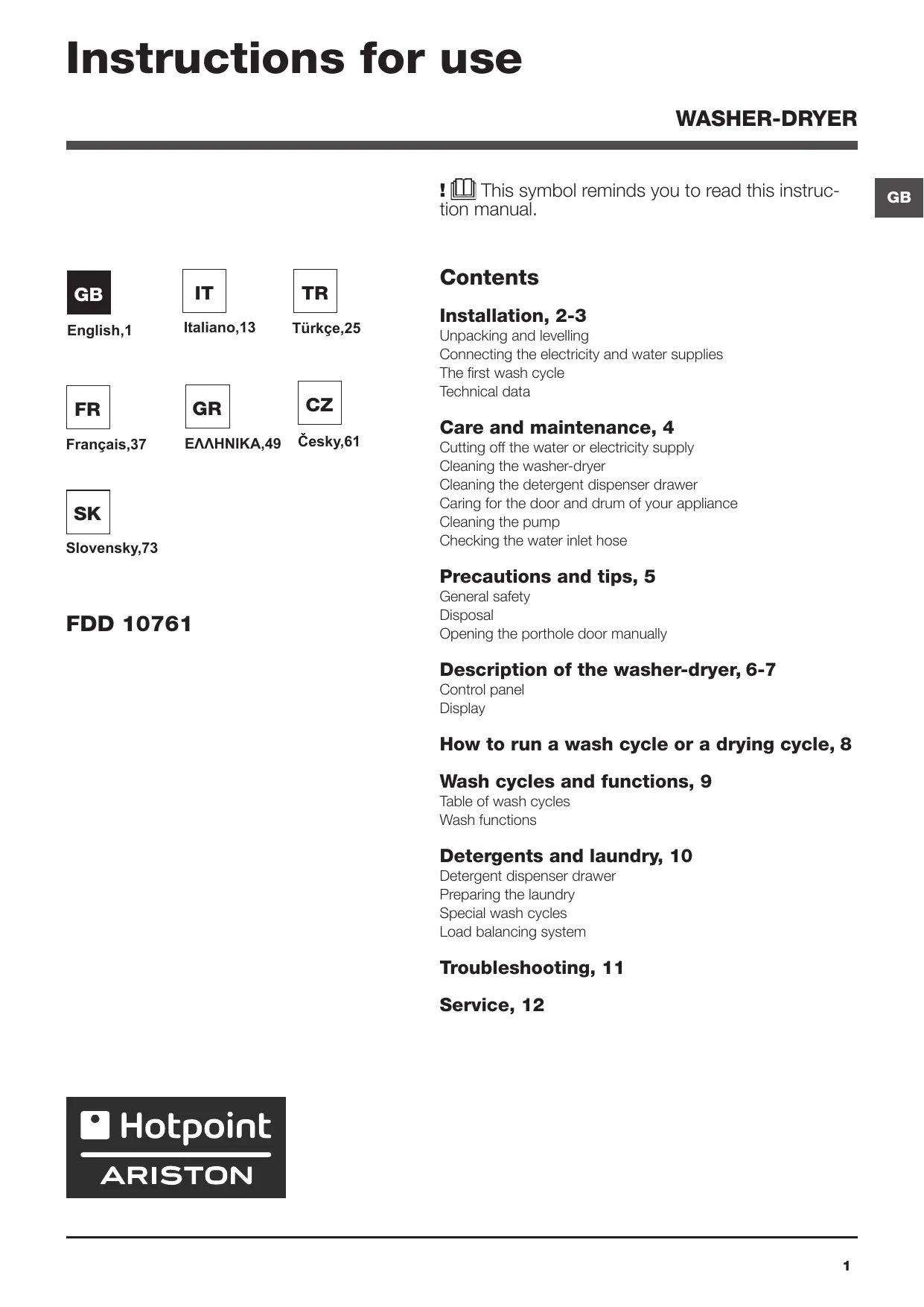 Download the instructions for your Dishwasher in PDF format for free! Find your manual FDD10761XR - HOTPOINT and take your electronic device back in hand. On this page are published all the documents necessary for the use of your device. FDD10761XR by HOTPOINT.