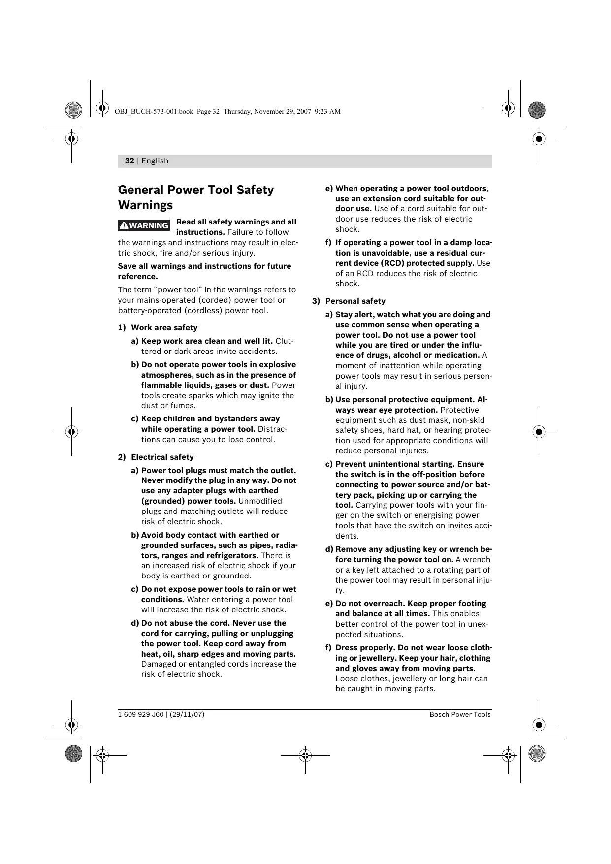 OBJ_DOKU-9733-001.fm Page 1 Thursday, November 29, 2007 9:33 AM OBJ_BUCH-573-001.book Page 2 Thursday, November 29, 2007 9:23 AM Bosch Power Tools