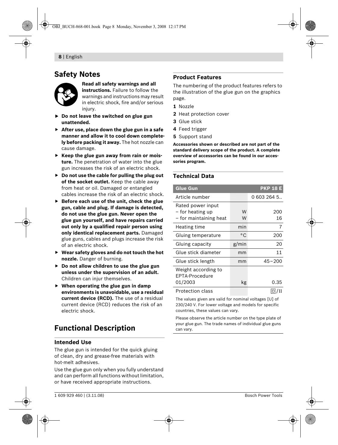 PKP 18 E - REV 11-2008 - Pistolet à colle BOSCH - Free user manual and instructions
