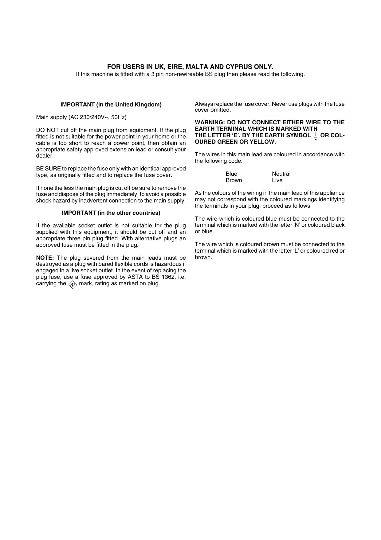 1. Als u de machine onbeheerd achterlaat, dient u de hoofdschakelaar van de machine uit te zetten of de stekker uit het stopcontact te halen. 2 Als er onderhoud aan de machine wordt verricht, er deksels worden verwijderd of een lampje wordt vervangen dient de stekker van de machine uit het stopcontact te worden gehaald. - Après avoir utilisé la machine - En cas de coupure de courant durant l’utilisation de la machine - Lorsque la machine ne fonctionne pas correctement à cause d’une mauvaise connexion ou d’un débranchement - Durant les orages