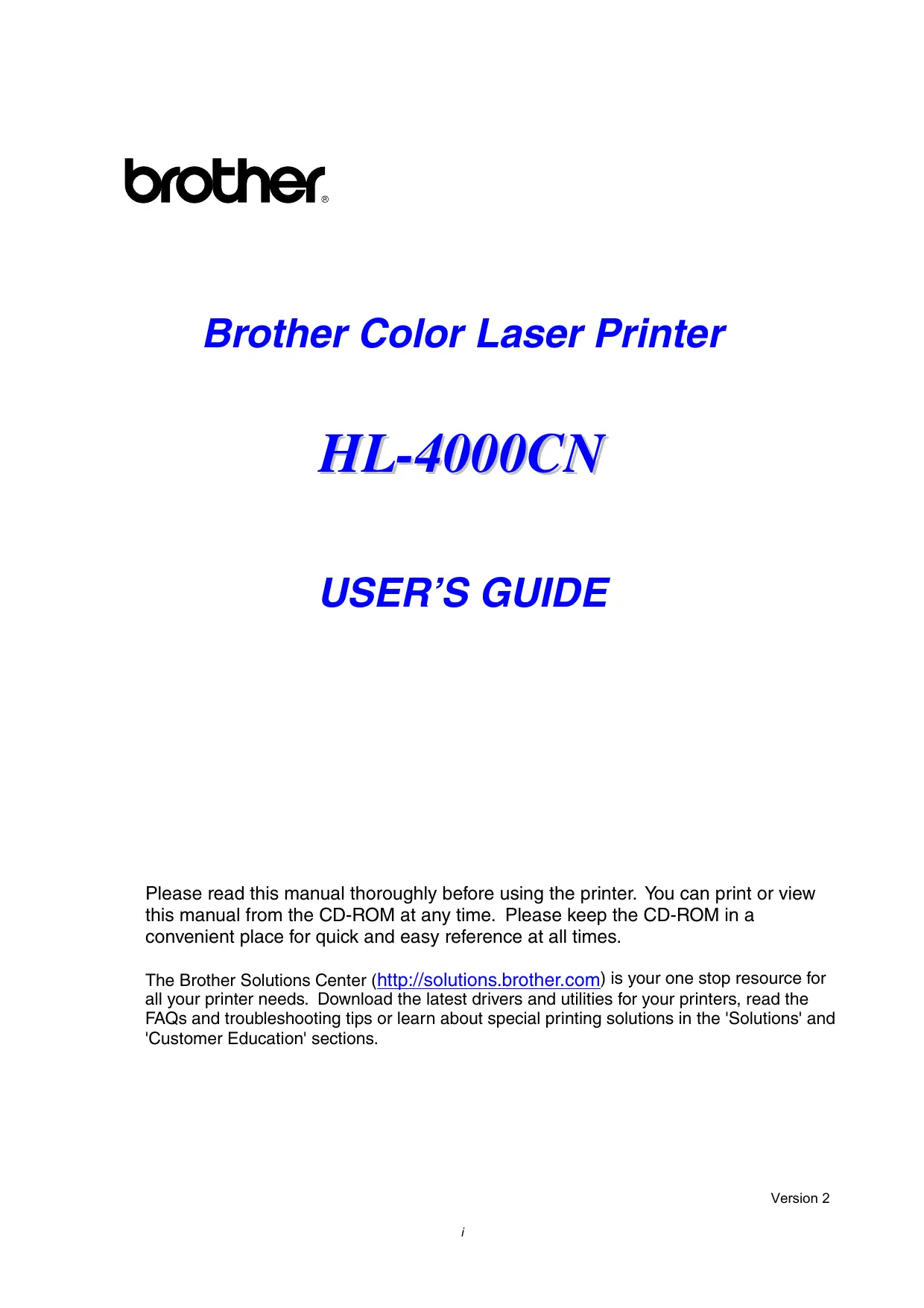 Download the instructions for your Color laser printer in PDF format for free! Find your manual HL-4000CN - BROTHER and take your electronic device back in hand. On this page are published all the documents necessary for the use of your device. HL-4000CN by BROTHER.