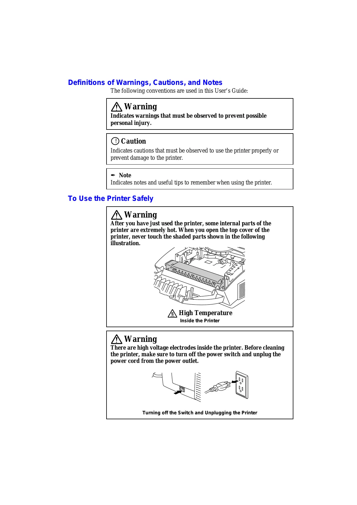 © Caution Indicates cautions that must be observed to use the printer properly or prevent damage to the printer.