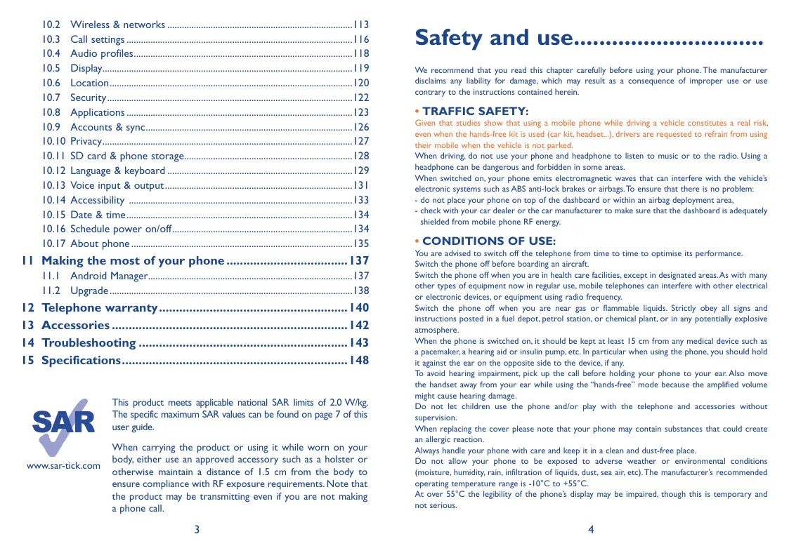 9.5 Battery Saver.. 9.6 Setup Wizard. 9.7 Ofice suite. 9.8 Traffic Manager. 99 Alcatel Help 9.10 Voice Dailer 9.11 Voice Search 9.12. Other applications Settings 10.1 SIM management