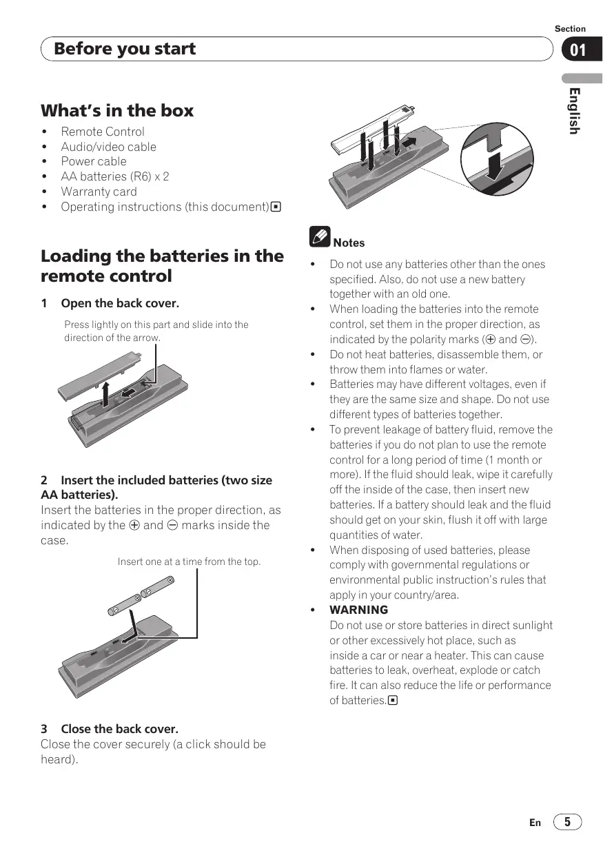 @® Before you start What's in the box... Loading the batteries in the remote control Playable discs.. Playable files.