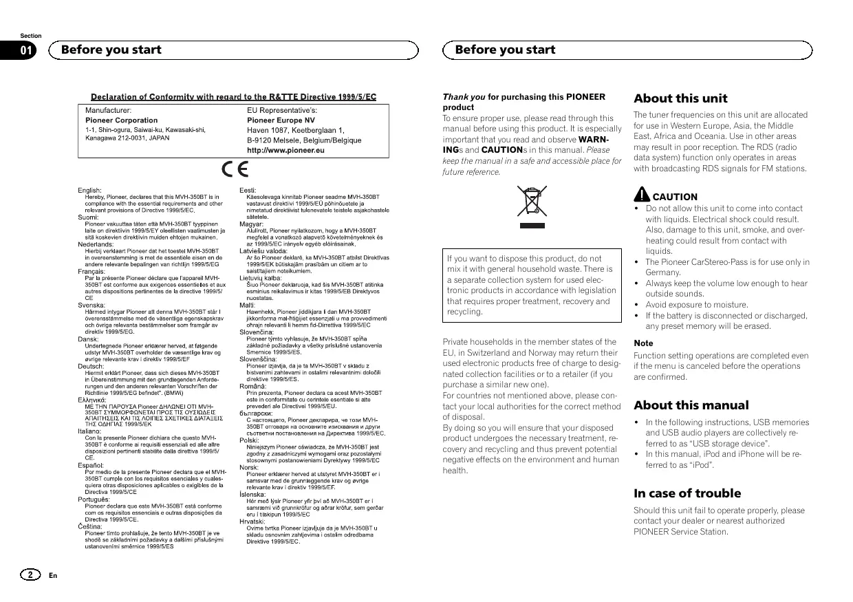 Download the instructions for your Car stereo in PDF format for free! Find your manual MVH-350BT - PIONEER and take your electronic device back in hand. On this page are published all the documents necessary for the use of your device. MVH-350BT by PIONEER.