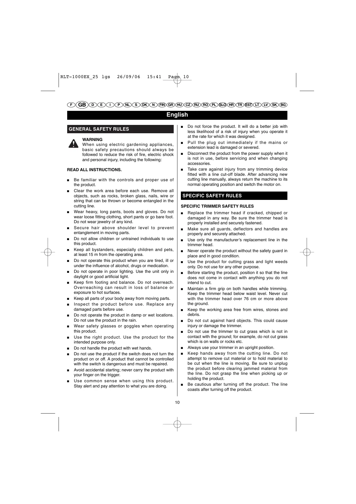 CONSIGNES DE SÉCURITÉ SPÉCIFIQUES CONSIGNES DE SÉCURITÉ SPÉCIFIQUES AUX COUPE-BORDURES