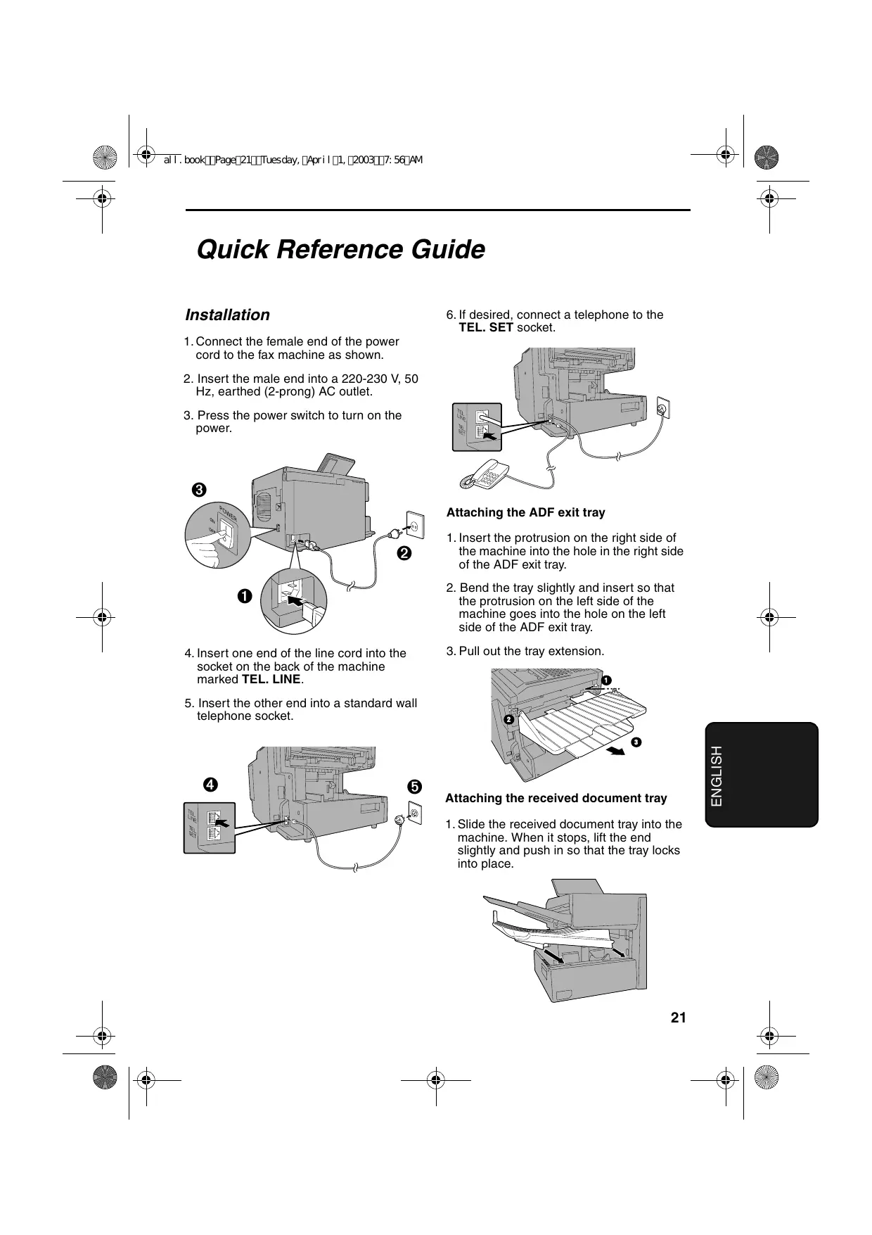 telephone socket. Attaching the received document tray